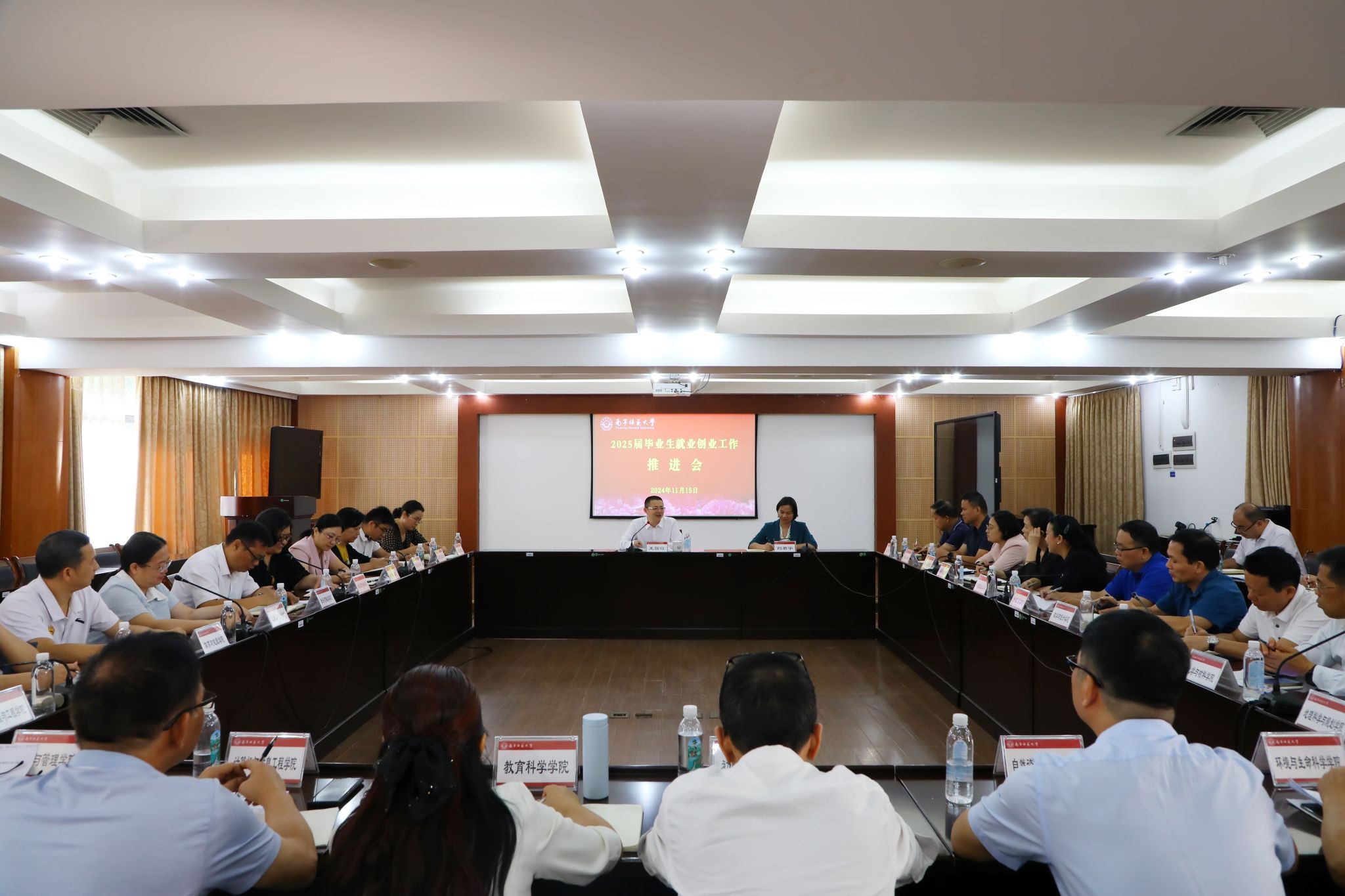 为认真贯彻落实党中央、国务院关于做好高校毕业生就业工作的决策部署,全面落实教育部、人力资源社会保障部2025届全国普通高校毕业生就业创业工作会议精神,11月15日上午,学校在明秀校区鸿远楼409会议室召开2025届毕业生就业创业工作推进会,学校副校长王国红出席会议。会议由招生就业处处长刘君宇主持。