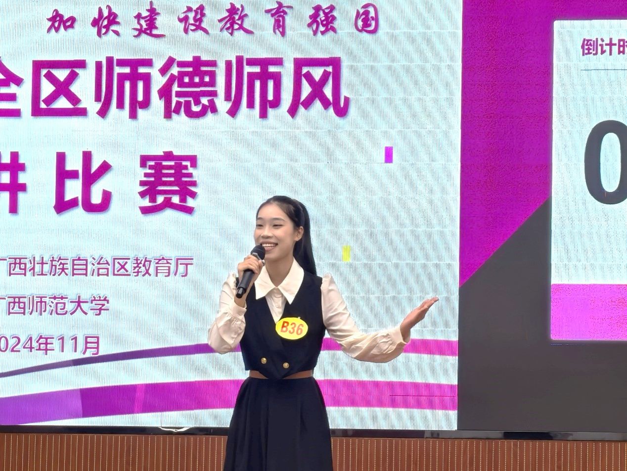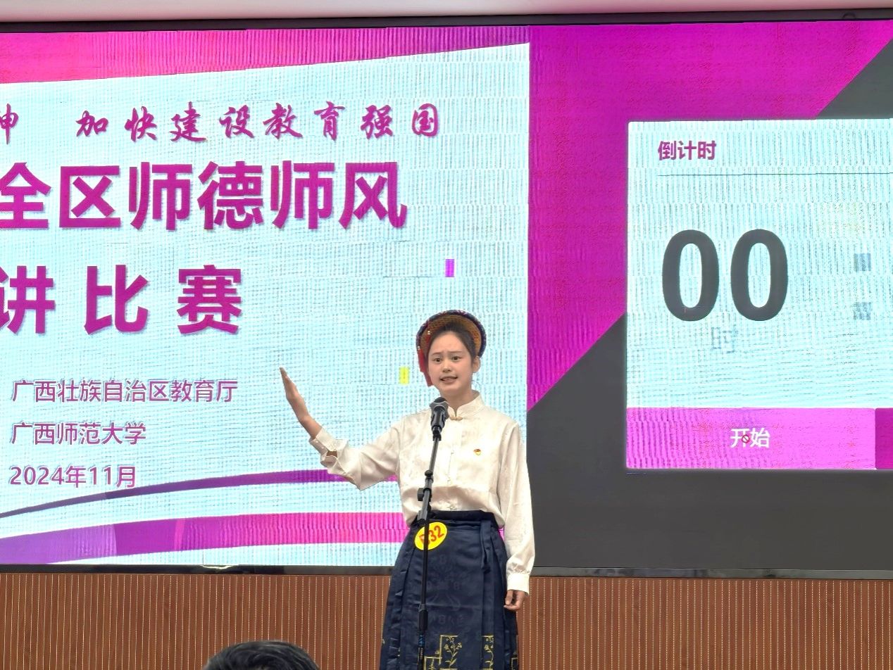11月17日,在自治区教育厅主办的2024年全区师德师风演讲比赛中,我校再创佳绩,学校推荐的4名参赛选手全部获奖。其中,马克思主义学院张璐和初等教育学院姚佳妮、赵怡艳荣获一等奖;文学院冯雪荣获二等奖。在全区6个一等奖中,我校占据3席,总成绩在参赛的30所高校中排名第一。姚佳妮同学还作为所有参赛选手的唯一代表上台发言。