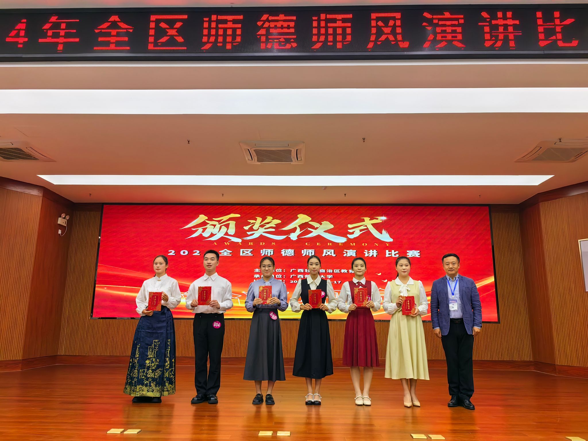 师德师风是教师队伍建设的重要内容,也是推动教育事业发展的重要保障。我校一直以来高度重视师德师风建设。此次在全区师德师风演讲比赛中取得的优异成绩,也是对我校师德师风建设成果的一次生动展示。展望未来,我校将继续坚持立德树人根本任务,进一步加强师德师风建设,努力培养更多具有高尚师德、精湛师能的优秀教师,为教育事业的发展贡献更多的智慧和力量。