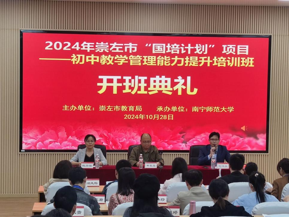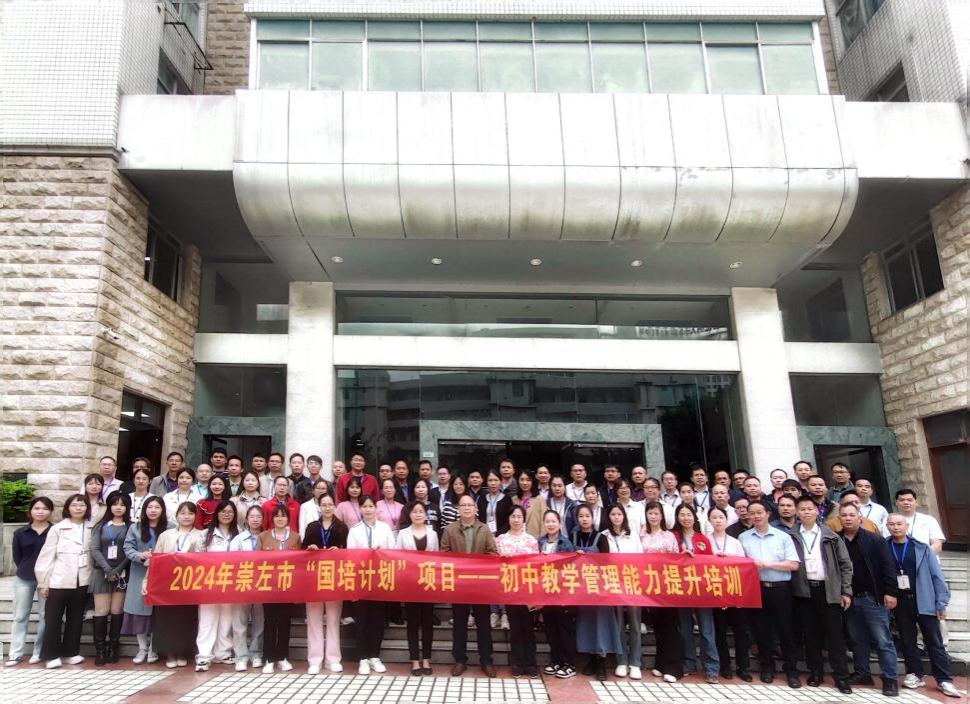 近日,我校与崇左市教育局携手合作,举办了2024年崇左市“国培计划”项目——初中教学管理能力提升培训班。此次培训班旨在提高崇左市初中教师的教学管理能力和教学质量,进一步推动崇左市教育事业的优质均衡发展。