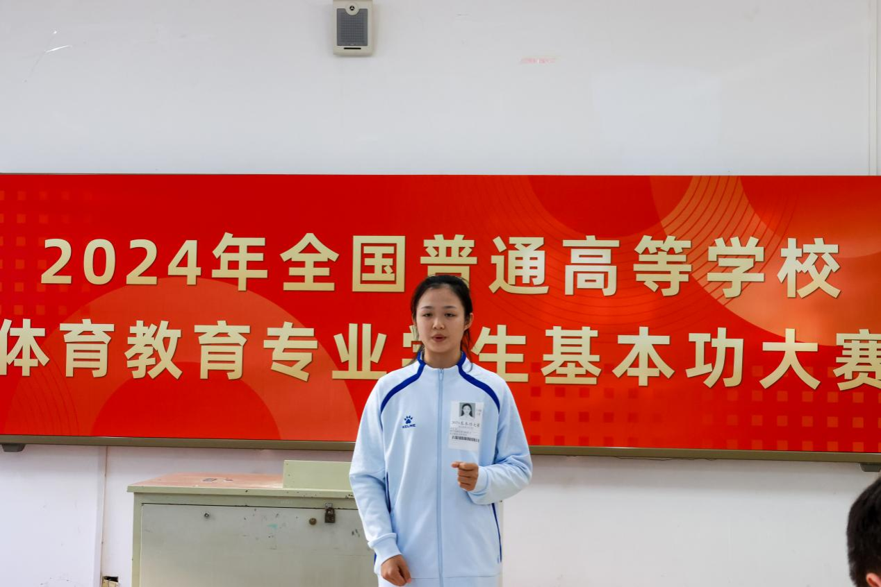 全国高校体育教育专业学生基本功大赛每三年举办一次,现已成为高等学校体育教育专业参赛规模最大、专业水平最高、国内影响力最广的一项赛事。本次大赛设置了基础理论、教学技能(微课)、运动技能(专项)和教练技能等四个项目,其中教学技能(微课)赛前1小时随机抽取1个内容进行比赛。教练技能赛前1小时专人抽取视频素材,观看5分钟后,进行临场教练技能比赛,全方位地考察了体育教育专业学生的基本功。比赛评委来自全国体育学科权威专家,秉持公平公正原则,认真严谨地评价每一位选手的表现。