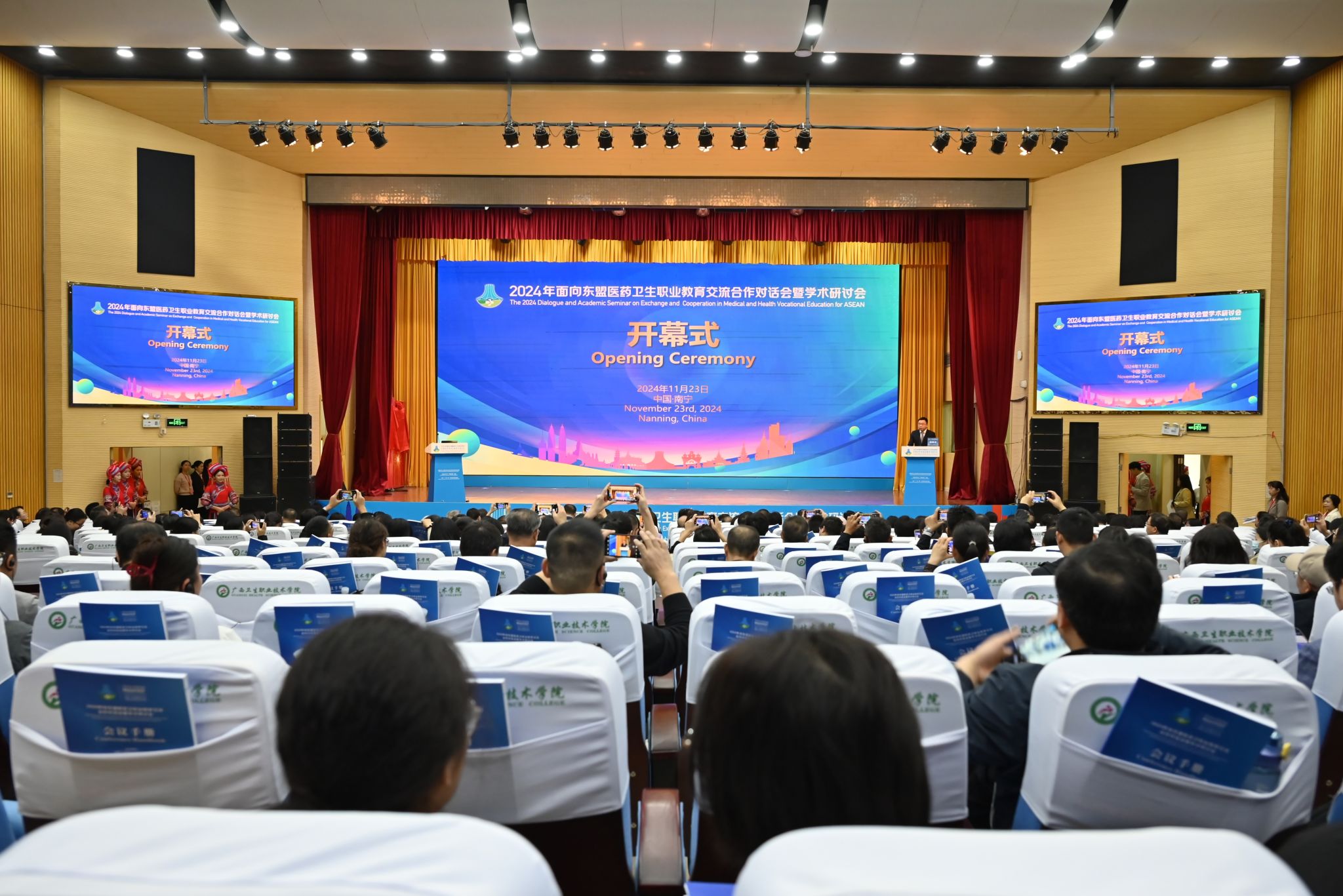 11月23日,2024年面向东盟医药卫生职业教育交流合作对话会暨学术研讨会在南宁举行。研讨会由挂靠我校的中国—东盟职业教育研究中心(以下简称“中心”)主办,广西卫生职业技术学院承办。中心理事长、我校校长李传起出席研讨会并致辞。中心常务副主任王屹应邀出席。