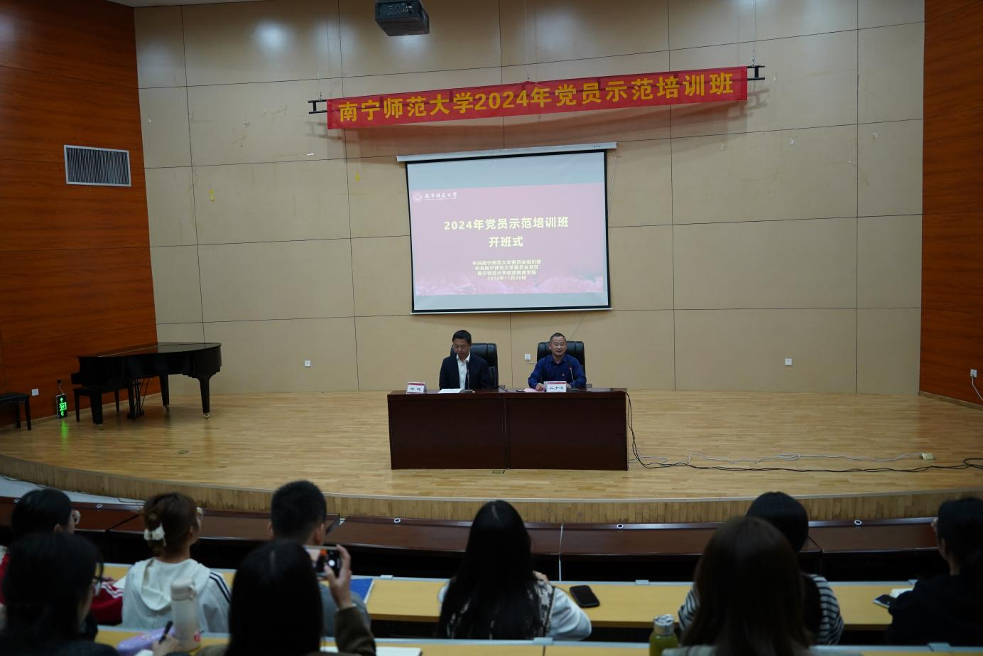 11月26日下午,南宁师范大学2024年党员示范培训班在武鸣校区音舞楼A1009报告厅举行开班式。学校各二级党委共70余名师生党员参加了开班式。学校干部教育培训学院副院长、继续教育学院院长徐健出席开班式并讲话。学校党委组织部副部长吴少进主持开班式。