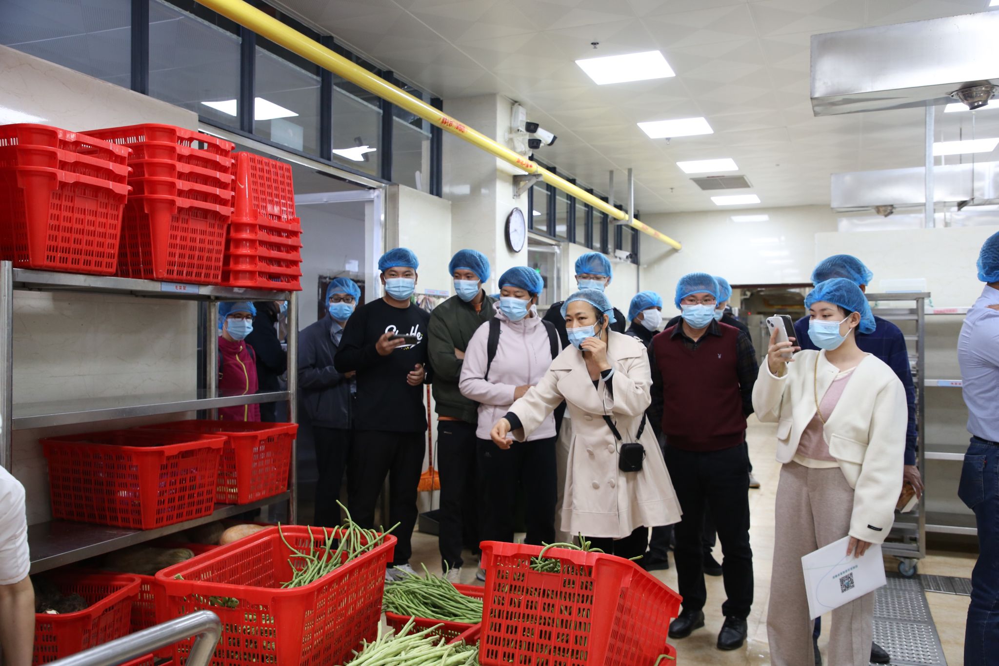 来自学校31个分工会的教职工代表戴上口罩、工作帽,经过层层“武装”进入了兰园食堂后厨。现场后勤膳食科负责人化身“导游”,为代表们详细讲解学校食堂食材采购存储流程、后厨操作流程、日常监管等各方面工作情况。教职工代表一路参观蔬菜加工间、肉类加工间、白案加工间、烹饪间、餐具清洗消毒间等场所,聆听了后勤膳食科负责人对各类厨房设备的工作流程和使用方法的介绍,并就食品种类、食品安全等相关问题提出意见和建议。后勤基建处相关负责人、膳食科负责人与教职工代表在现场进行了交流。通过实地参观,教职工代表对食堂的运行有了全面详实的了解,对学校食堂为了给全校师生员工提供安全可靠的饮食所付出的努力表示感谢,并表示要以身作则,践行“厉行节约、反对浪费”的社会风尚。