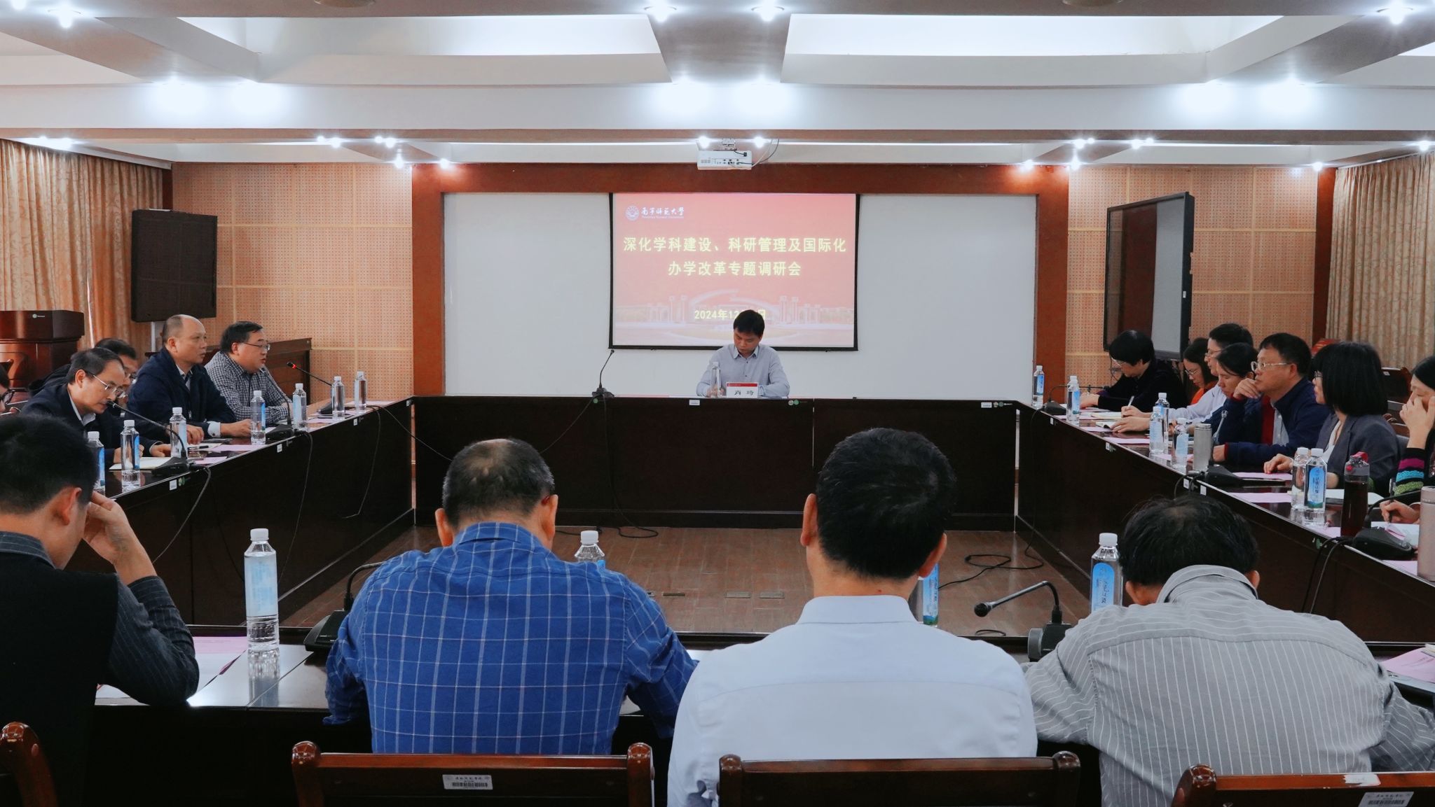12月2日下午,学校在明秀校区鸿远楼409会议室召开“深化学科建设、科研管理及国际化办学改革”专题调研会。学校副校长肖琦出席会议,研究生院、科研管理处、国际交流合作处、博士点建设学科负责人、一流学科负责人、二级学院分管科研和留学生工作的副院长、研究生院、科研管理处及国际交流合作处相关人员参加会议,研究生院院长盛家荣主持会议。