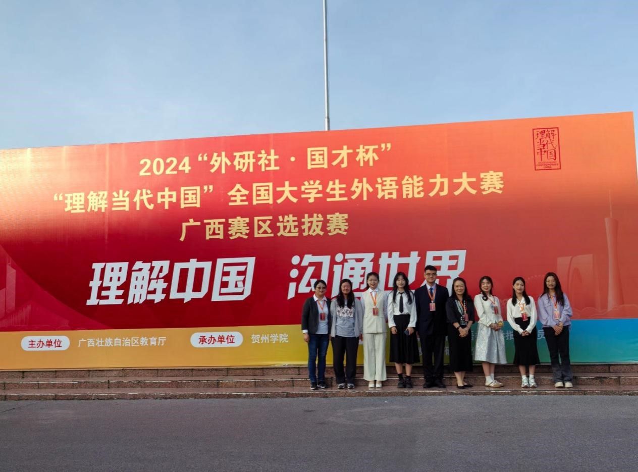 “外研社·国才杯”“理解当代中国”全国大学生外语能力大赛连续多年入选《全国普通高校大学生竞赛分析报告》竞赛目录,此次广西赛区选拔赛共有来自全区41所高校近600名学生参赛。大赛以“理解中国,沟通世界”为主题,引导大学生领会习近平新时代中国特色社会主义思想核心要义,提高用英语讲好中国故事、传播中国声音的能力。我校高度重视英语学科竞赛工作,通过组建指导教师团队,积极筹备各分项赛事等举措,加强竞赛的组织和赛前指导工作。在本次大赛中,我校学子展现了扎实的语言基础、出色的外语能力和深厚的文化素养。