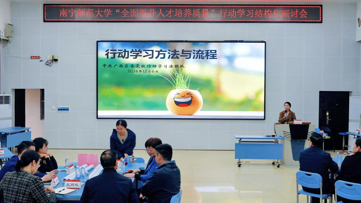 在研讨会上,中共广西区委党校孟祥宁副教授介绍行动学习方法与流程
