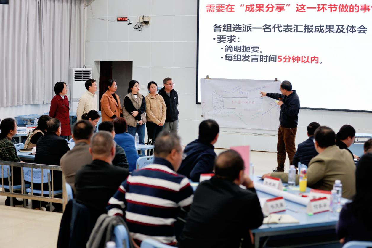 在研讨阶段,物流管理与工程学院、地理科学与规划学院分别介绍了学院人才培养的经验和优势特色,初等教育学院、物理与电子学院介绍了第二课堂建设的经验和优势特色,马克思主义学院、旅游与文化学院介绍了三全育人的经验和优势特色。随后,在吕勇教授团队的指导下,参会人员围绕协同提升人才培养质量核心主题进行了分组研讨。