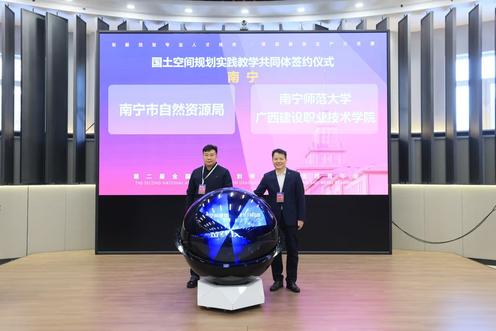 会上,33个城市主管部门与所在地高校相关负责人签署“国土空间规划实践教学共同体”共建协议,推进教学实践、科研创新、人才培养等多方面深度合作。我校代表与南宁市自然资源局的代表签订合作协议,达成共建“国土空间规划实践教学共同体”的合作意向,三方本着“结对共建、整合资源、面向应用、协同创新”的原则,以高质量发展理念为引领,紧密围绕地方发展需求,充分发挥地方自然资源主管部门和地方专业高校的优势,共同建设高水平的政产学研融合的科技创新平台,积极培养高素质国土空间规划专业人才,更好地满足国土空间规划人才队伍建设需求。