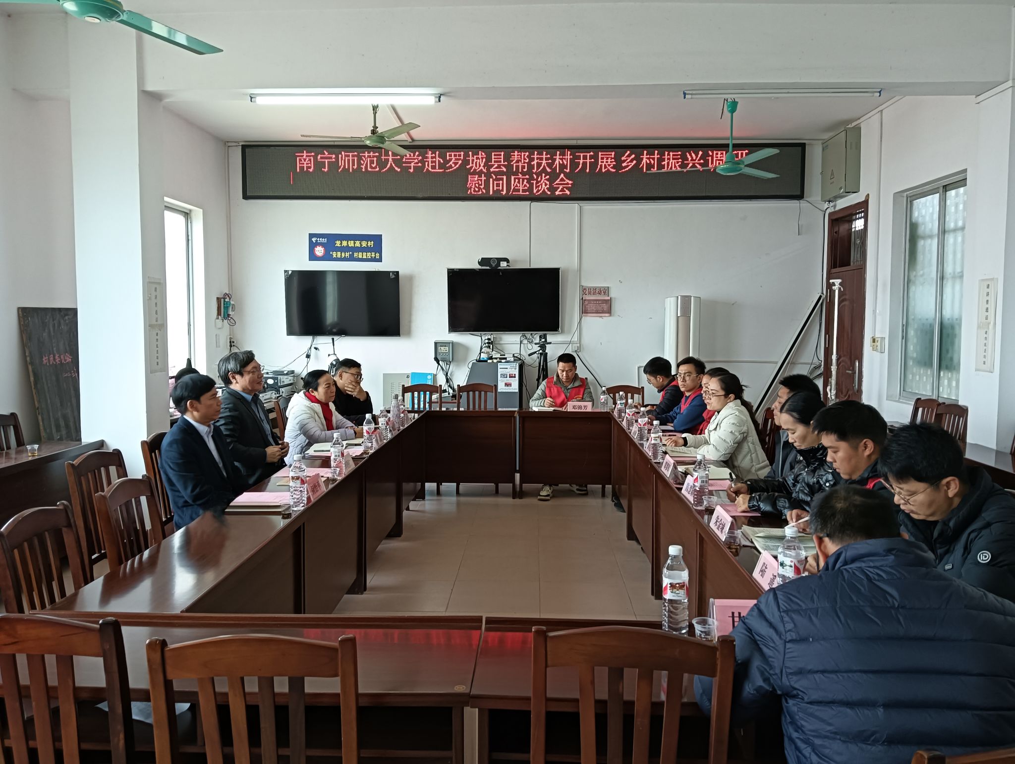 12月19日,李传起校长一行赴罗城县龙岸镇进行调研走访。在龙岸镇高安村召开的调研慰问座谈会上,6名驻村第一书记汇报了近期工作开展情况、存在的困难及下一步打算。龙岸镇党委书记覃罗军对学校近年来在精干力量选派、农副产品采购、项目援建等方面的大力支持表示感谢,并介绍了龙岸镇近年来乡村振兴工作情况。县委常委、副书记黄菊云代表县委县政府对学校帮扶罗城表示感谢,并恳请学校在产业、教育、科技等方面加大帮扶力度。龙妮娜副校长向罗城县关心培养学校派驻工作队员表示感谢,并期待学校发挥资源优势积极参与罗城发展建设。李传起校长对脱贫攻坚以来罗城取得的发展成绩表示赞赏。他强调,学校将继续加大帮扶力度,在涉农培训方面,将依托广西农业经理人学院举办农业经理人培训班罗城专场;师资培训方面,将发挥教师教育优势加强教师培训方面的合作,并依托未来教育研究院帮助罗城中小学校开展教学研究;招生就业方面,欢迎罗城优质生源报考我校,期待罗城用人单位到学校举办专场招聘会。