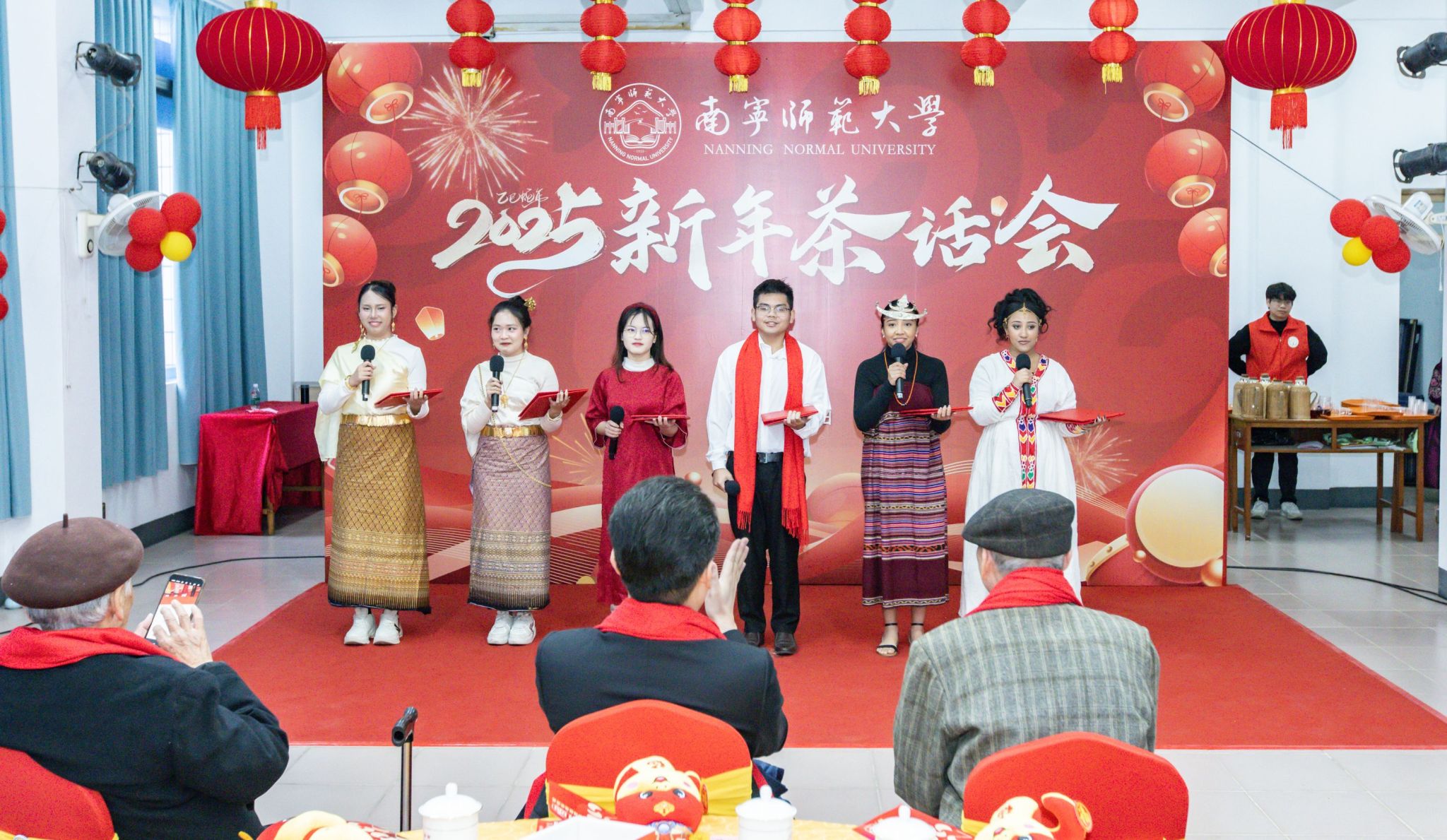 张鹏代表学校向各位老领导、老同志、民主党派和无党派人士、学校师生、留学生代表们致以诚挚的问候和美好的祝愿。他表示,2024年是砥砺奋进的一年、满载收获的一年、倾情用情的一年。我校坚持以习近平新时代中国特色社会主义思想为指导,全面深入贯彻党的二十届三中全会精神和习近平总书记关于广西工作论述的重要要求,全面落实全国、全区教育大会精神,励精图治,奋发进取,学校高质量发展迈出了坚实的步伐。他指出,2025年是“十四五”规划收官之年,是博士授予单位建设的第一年,学校进入了一个新的历史发展阶段。他强调,要以新的站位、新的视角、新的理念去谋划未来的事业。希望老师同学们在新的一年奋勇争先、挺膺担当,积极调整心态,主动拥抱变局,在伟大的时代变革中磨砺心性与才干,在新的开局中增长智慧和力量,积极服务经济社会发展,为强国建设、壮美广西建设作出新的更大贡献。
