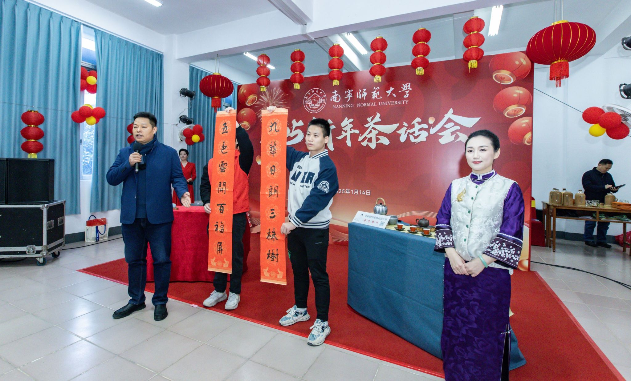 李传起回顾了学校2024年各项事业取得的成就:博士单位建设喜迎突破,科研工作再开新局,人才培养喜讯频传,师资队伍建设持续加强,社会服务能力不断彰显。他表示,各项成绩的取得离不开全体南师人的努力,向一年来辛勤工作在教学、科研、管理、服务等各个岗位的全体教职员工,向勤奋学习、全面发展的青年学子,向关心支持学校建设和发展的离退休老同志,表达衷心的感谢,并致以诚挚的问候和新一年的美好祝福。他指出,2025年要“围绕一个目标,谋划两件大事,推进五项工程”重点任务,加快推进高水平师范大学建设。要更加紧密地团结在以习近平同志为核心的党中央周围,以更加饱满的热情,更加昂扬的斗志,更加务实的作风,把握新机遇,迎接新挑战,加快建设教师教育国内一流、服务地方贡献卓著、辐射东盟影响广泛的高水平师范大学。