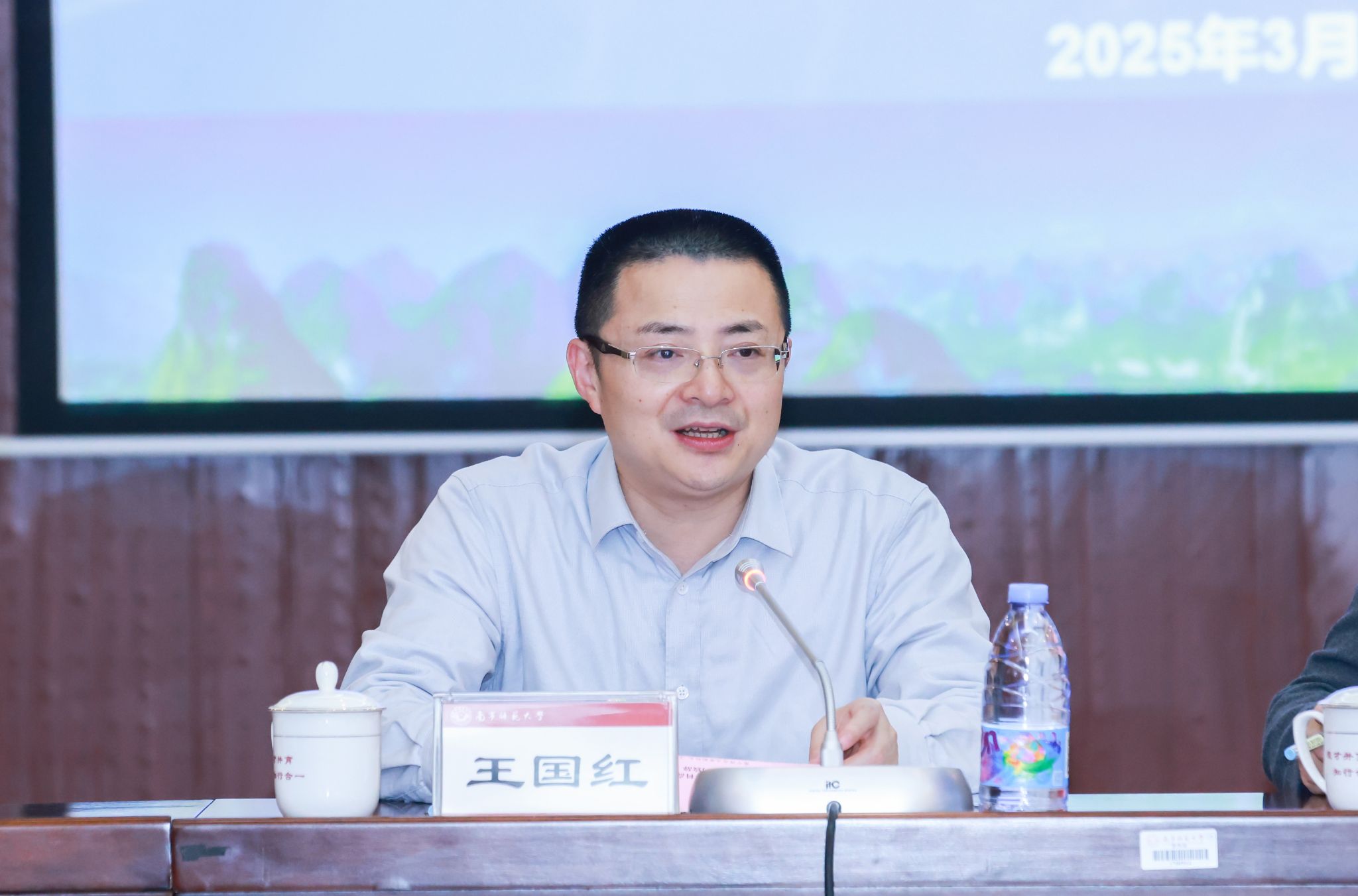 王国红代表全校师生向参会领导、兄弟院校同仁的到来表示热烈欢迎,对自治区教育厅的信任和支持致以衷心感谢。他表示,高等教育必须主动融入国家战略和区域社会经济发展需求,回应时代命题,希望在自治区教育厅的统筹领导下,与各兄弟院校一道当好教育初心的守护人,用技术的温度守护莘莘学子的求知目光,用数字的精度丈量教育公平的“最后一公里”。以此次会议为起点,携手共进,在八桂大地上书写新时代高等教育的“壮美答卷”。