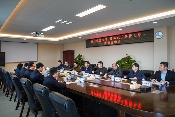3月20日,广西科技大学党委书记赵君、副校长邓朗妮热情接待了张鹏一行。双方在文昌校区办公楼5—1会议室座谈交流。该校有关部门负责人分别围绕人才强校、科研工作、实验室实训基地建设等作了专题汇报。我校有关部门负责人就校地企合作、机构改革、人事管理、实验室管理等方面工作向对方请教。会前,张鹏一行实地参观学校规划馆、文昌校区和柳东校区相关实验室。