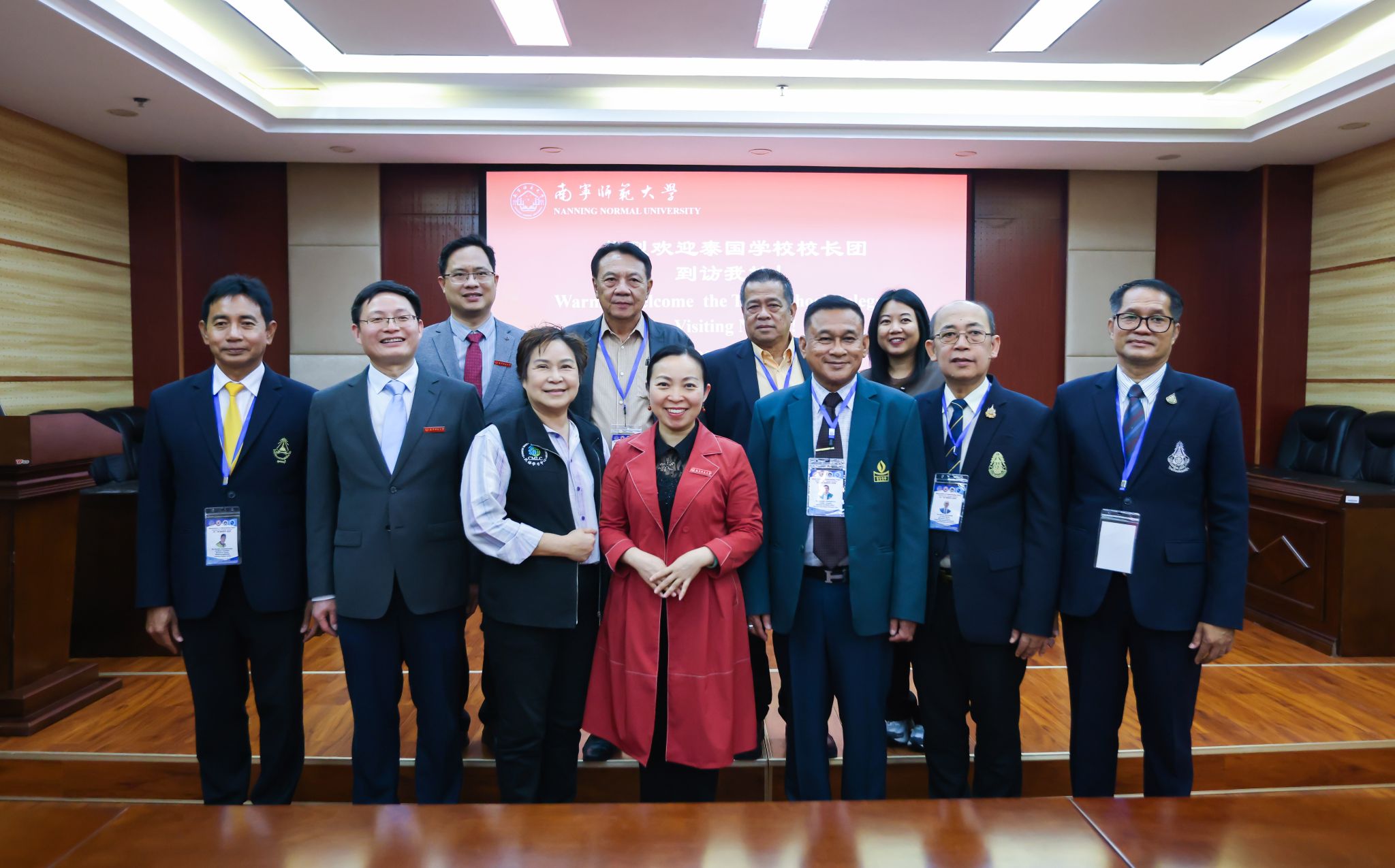 3月24日下午,泰国素攀武里小学教育服务区办公室主任及泰国素攀武里莎完莹学校、泰国素攀武里堪纳苏特苏卡利亚学校、泰国素攀武里堪恰纳琵色维迪亚莱学校校长团一行20人到我校访问。学校副校长龙妮娜、国际交流合作处(国际教育学院)相关负责人在明秀校区图书馆二楼会议室接待了代表团一行,并召开了座谈会。