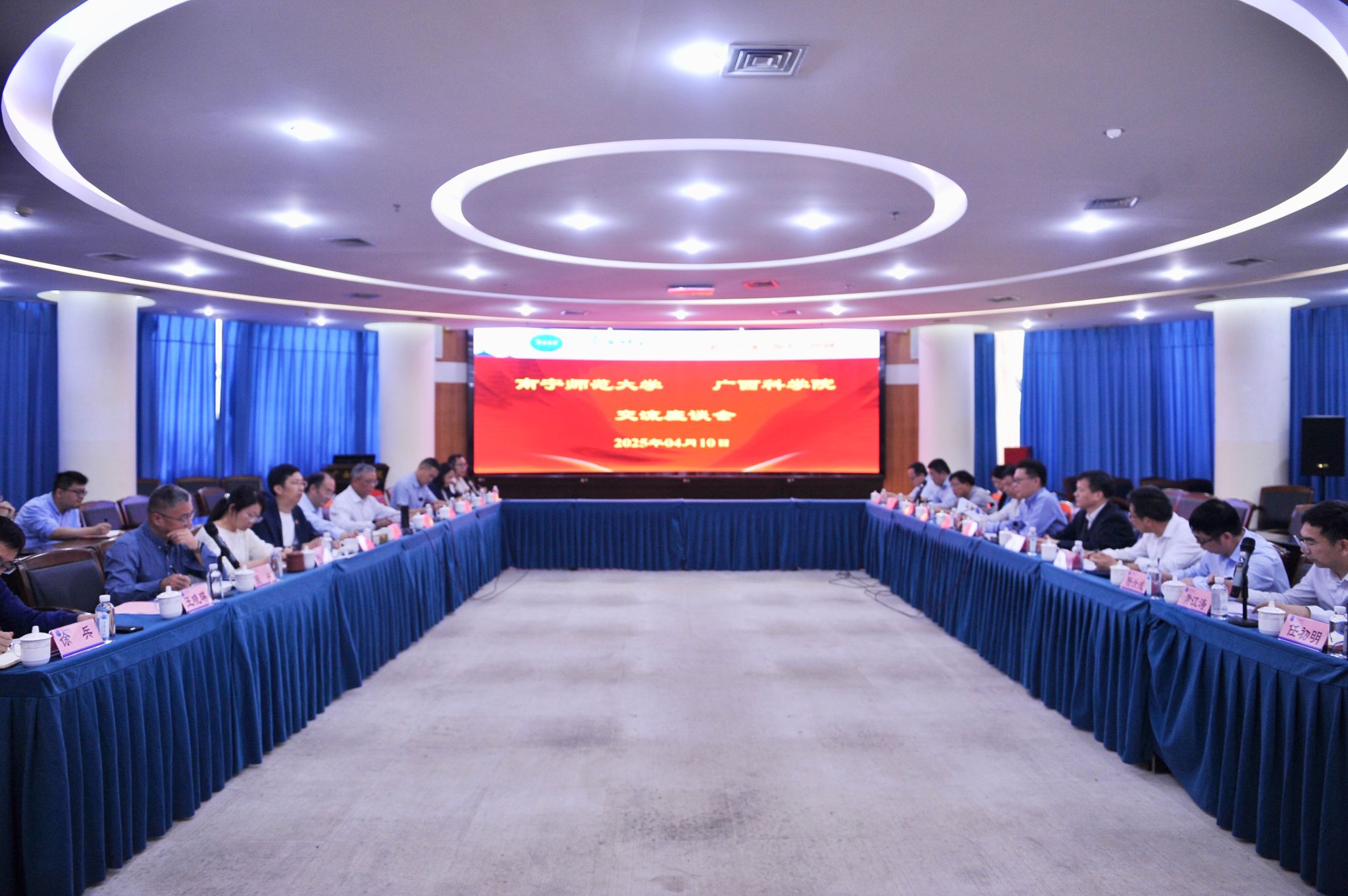 张鹏和元昌安就两个单位之间开展多种形式的合作充分交换了意见、畅谈了设想。元昌安分享了广西科学院近年来改革思路和与地方开展科研合作的经验,表示将发挥自身优势大力支持南宁师范大学学科建设和人才培养工作。张鹏介绍了学校近年改革发展取得的成绩,并就双方各自发挥优势加强科研合作、拓展服务地方经济社会发展的形式畅谈了设想。张鹏尤其介绍了我校人工智能学院建设的情况,希望广西科学院大力支持我校人工智能专业建设,以科研合作、人才培养为纽带,不断深化两个单位的合作关系。