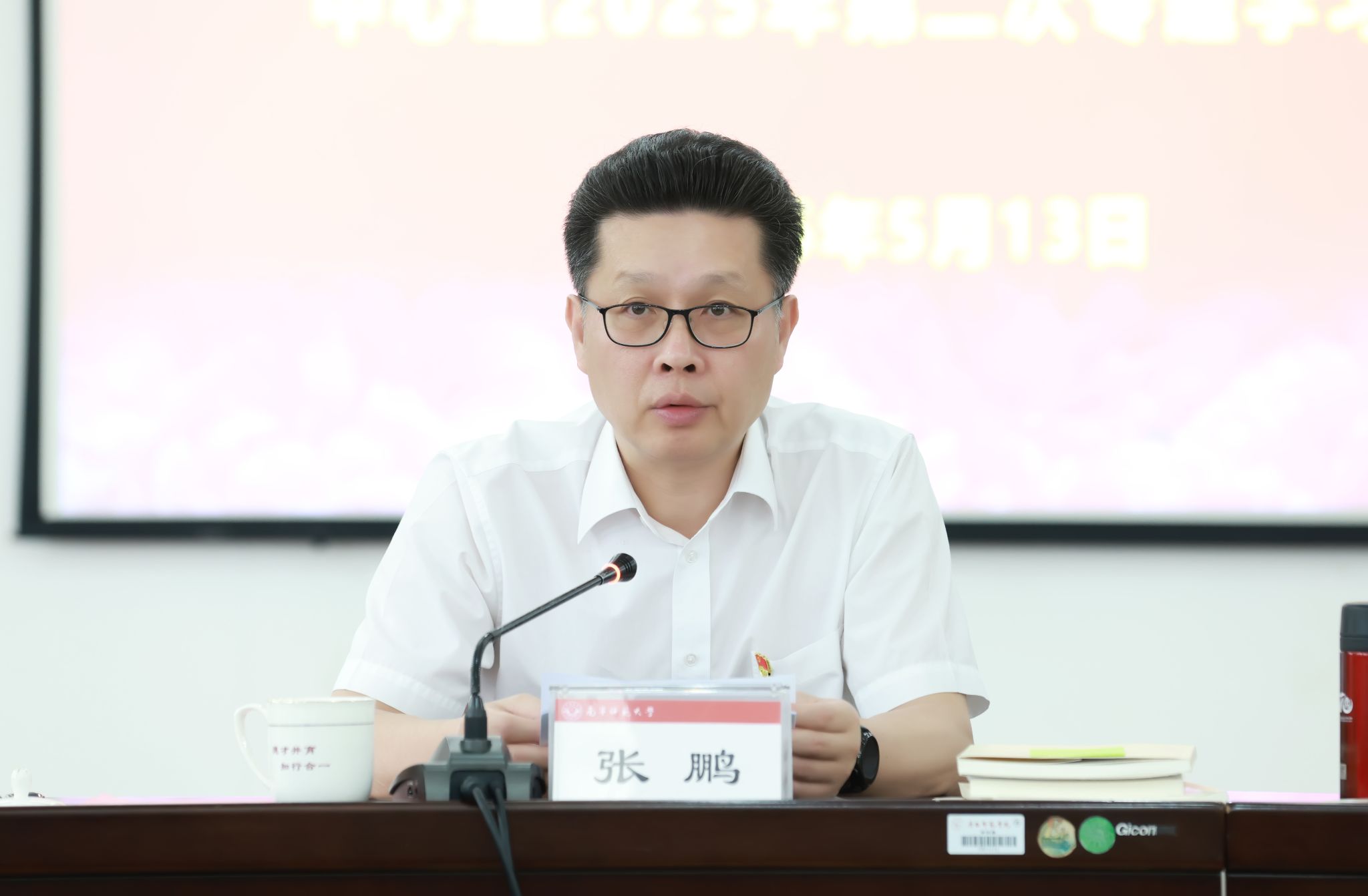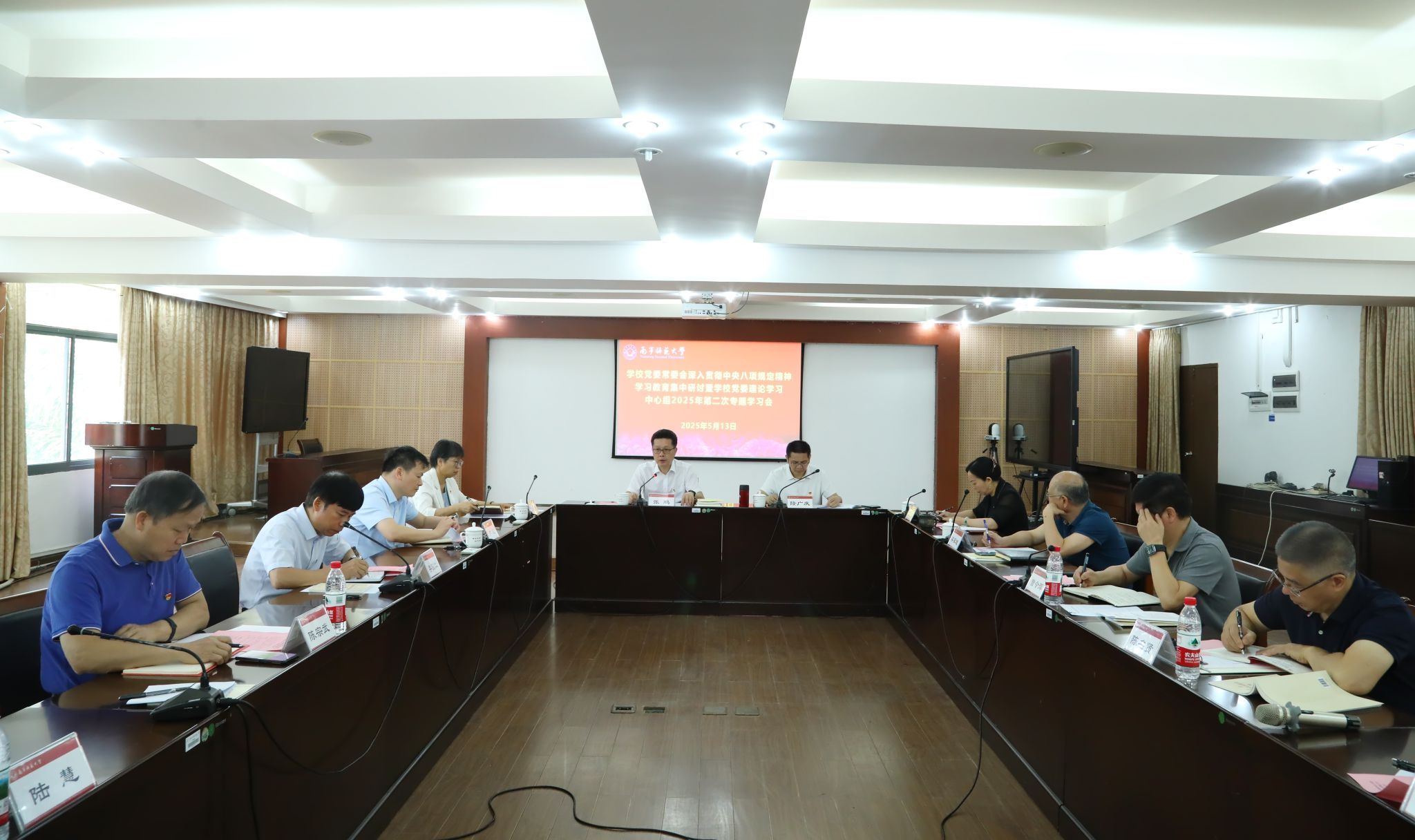 5月13日上午,我校党委常委会深入贯彻中央八项规定精神学习教育集中研讨暨学校党委理论学习中心组2025年第二次专题学习会在明秀校区鸿远楼409会议室举行。学校党委书记张鹏主持会议。