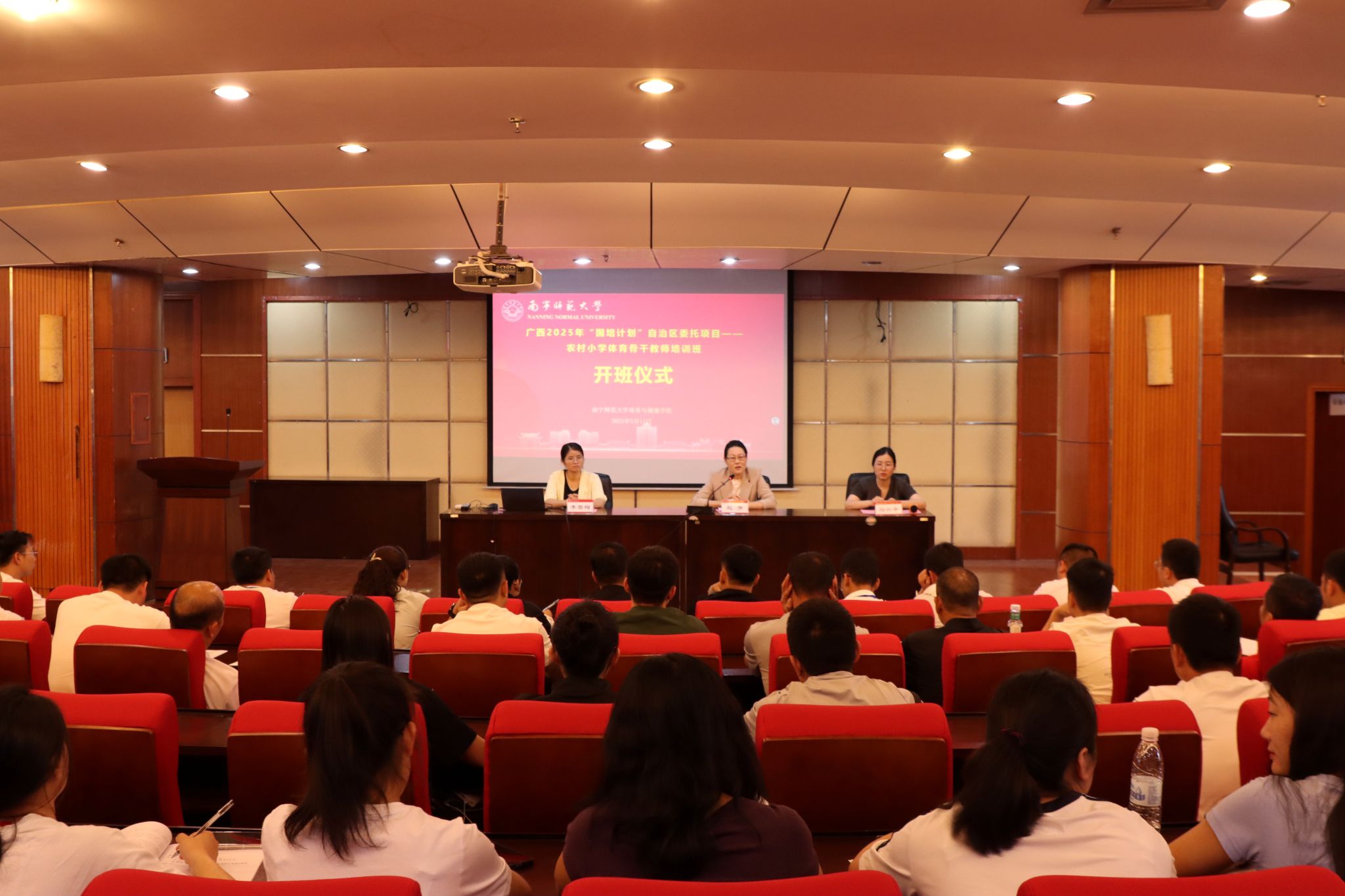 为积极响应国家关于加强农村教师队伍建设的号召,提高广西农村小学体育教师专业素养和教学能力,5月11日,广西2025年“国培计划”自治区委托项目——广西农村小学体育骨干教师培训班在南宁师范大学明秀校区图书馆三楼报告厅顺利开班。南宁师范大学体育与健康学院院长赵芳,院长助理、办公室主任,培训班班主任及来自全区的100名小学体育骨干教师参加。