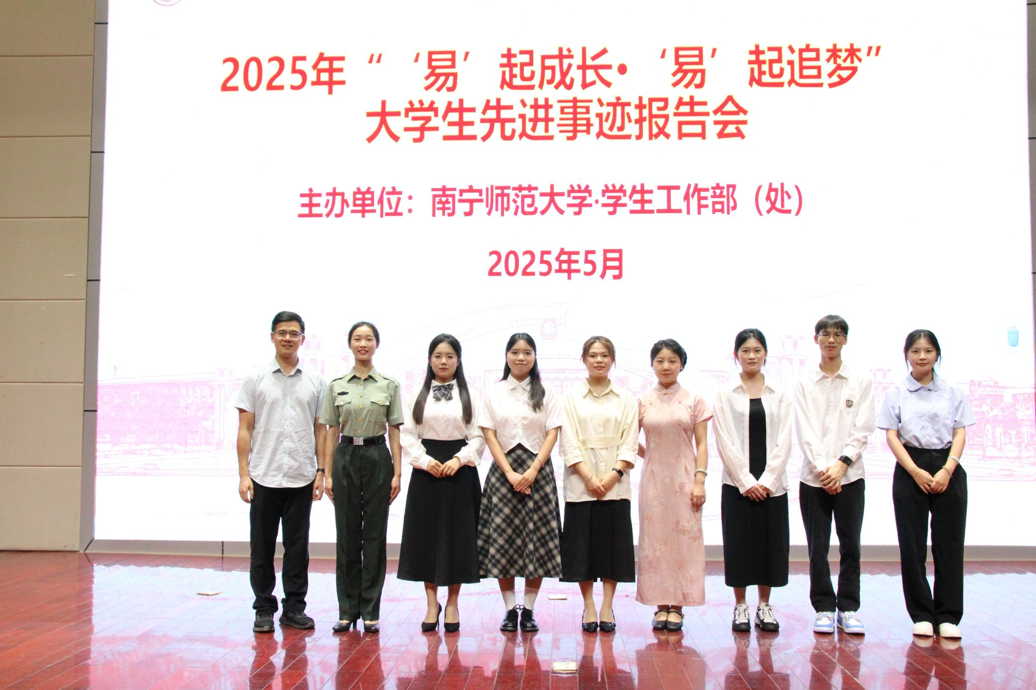 5月23日,我校分别在明秀、五合、武鸣三校区举办2025年“‘易’起成长·‘易’起追梦”大学生先进事迹报告会。本次报告会旨在通过树立先进典型、分享优秀学子的成长故事,激励广大在校生追逐梦想、砥砺前行,现场气氛热烈,吸引了近千名同学到场聆听先进事迹。