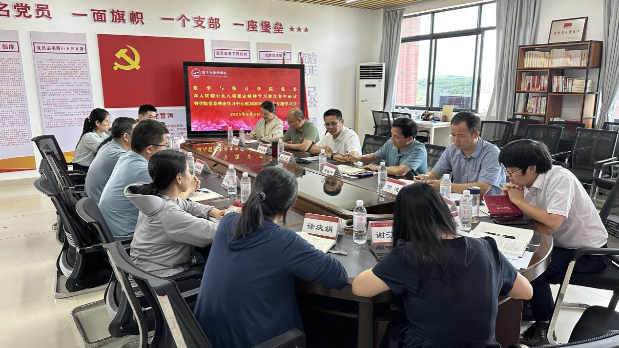 6月3日上午,数学与统计学院党委在数统楼A501党员活动室召开深入贯彻中央八项规定精神学习教育集中研讨暨学院党委理论学习中心组2025年第二次专题学习会,学校党委副书记、校长隆广庆到会巡听旁听。学院党委理论学习中心组成员参加会议,学院学生党支部书记列席会议,学院党委书记余敢才主持会议。会前,与会人员进行了为期三天的个人自学。