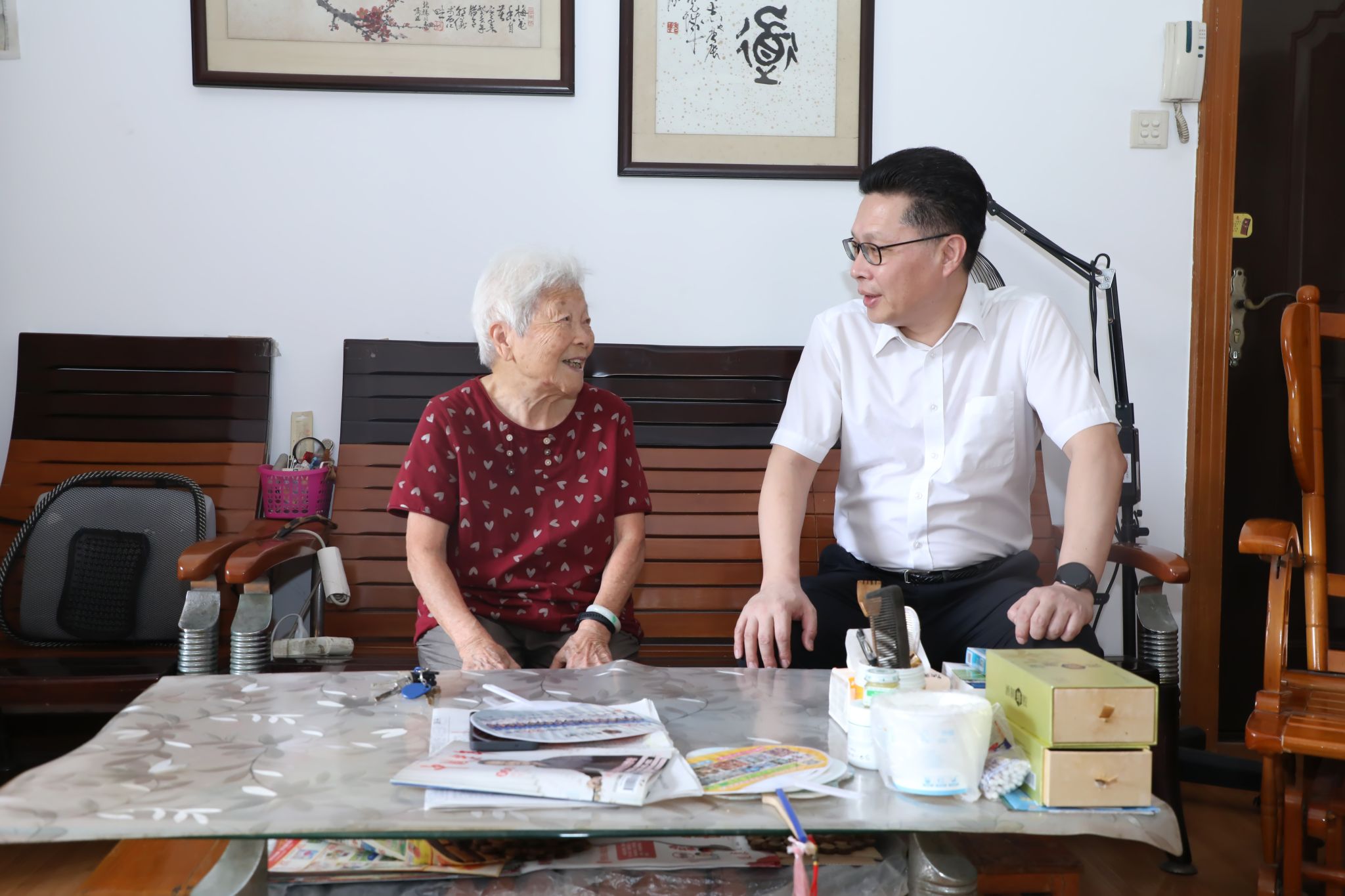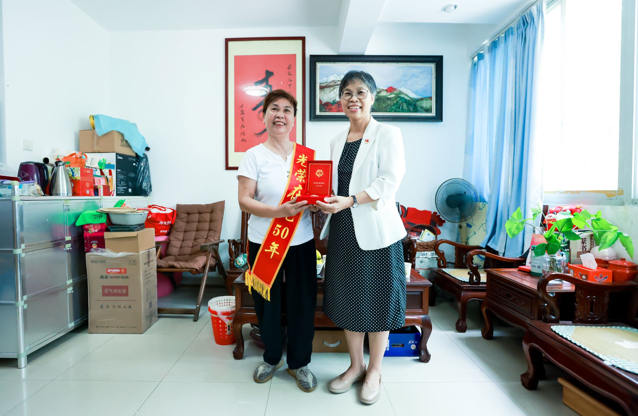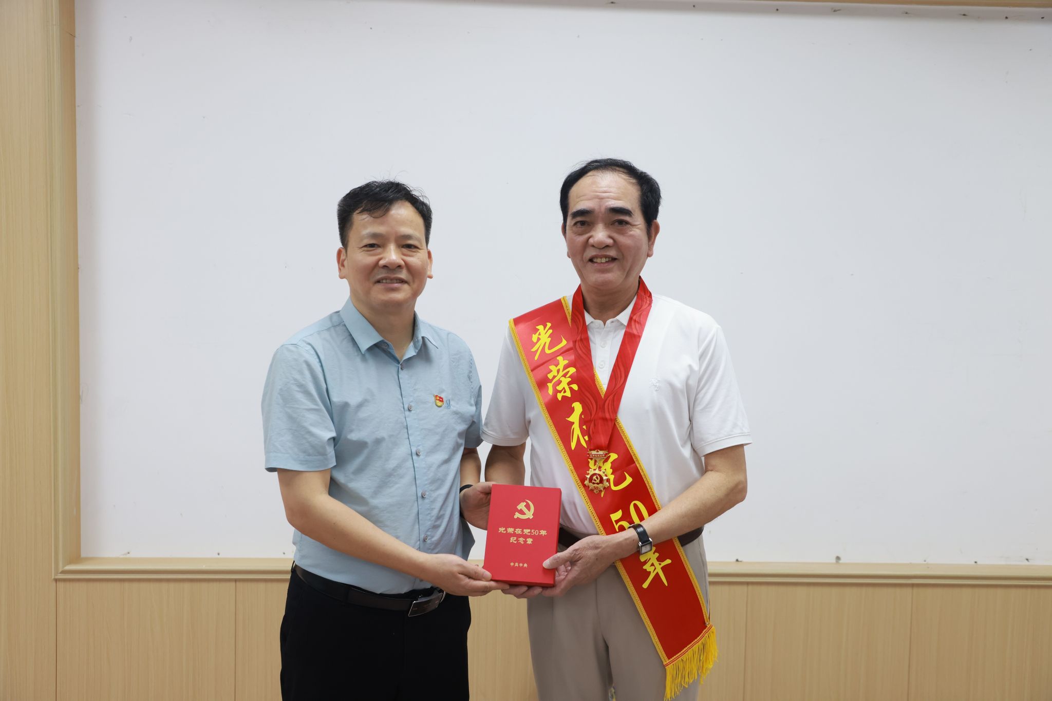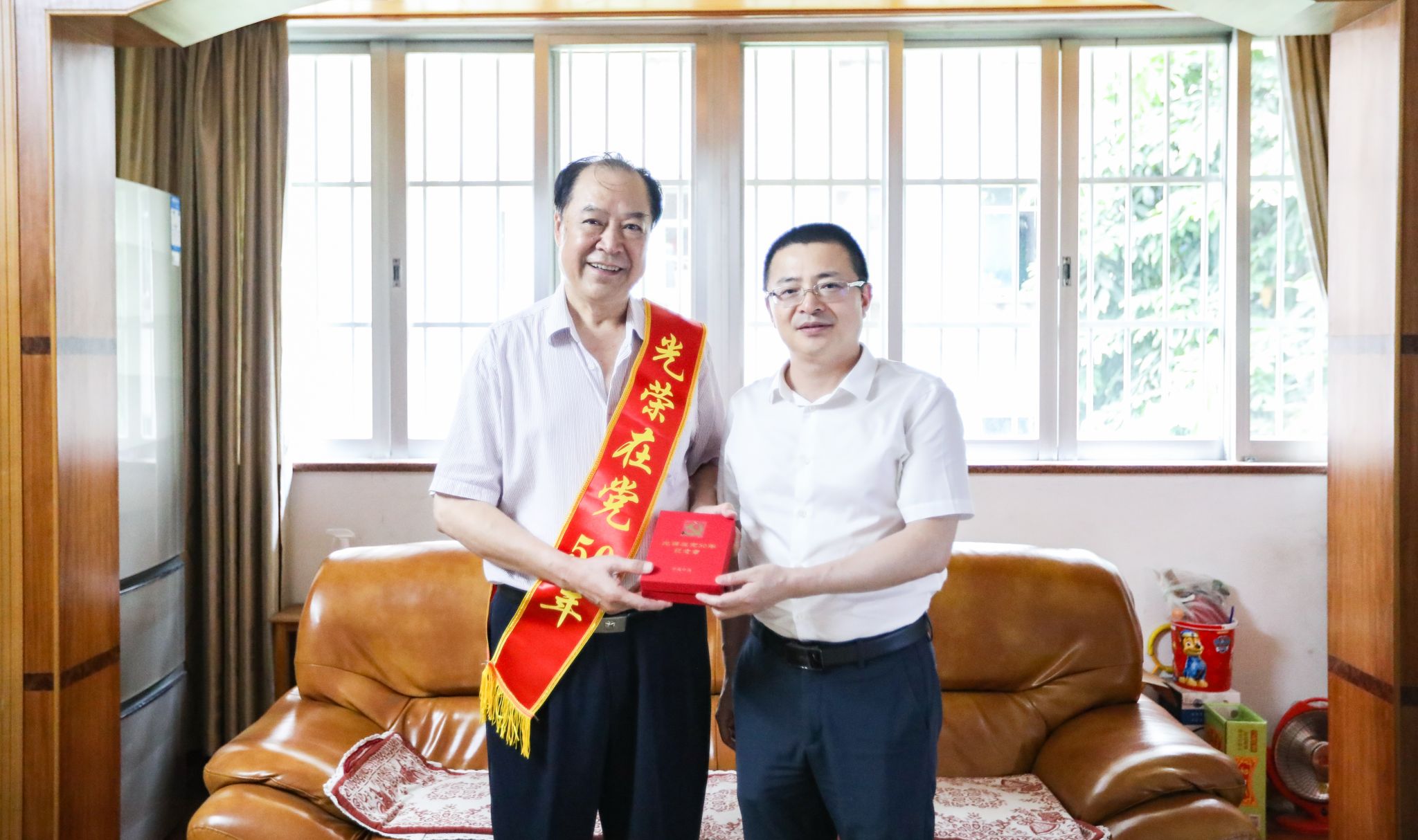 学校领导一行看望慰问了离休老干部代表薛碧芳、“光荣在党50年”党员代表李佳秋、任北上、韦春尧、杨思红、陆维杰、苏绍云,以及生活困难党员代表李福洲、梁冠超、郑卫华,为他们送上慰问金,颁发“光荣在党50年”纪念章。学校领导与离退休老同志亲切交谈,关心询问他们的身体状况、生活需求,感谢他们长期以来为党的教育事业和学校建设发展所作出的贡献,希望老党员们在保重身体、安享晚年的同时,一如既往地关心支持学校各项工作,继续为学校高质量发展积极建言献策。