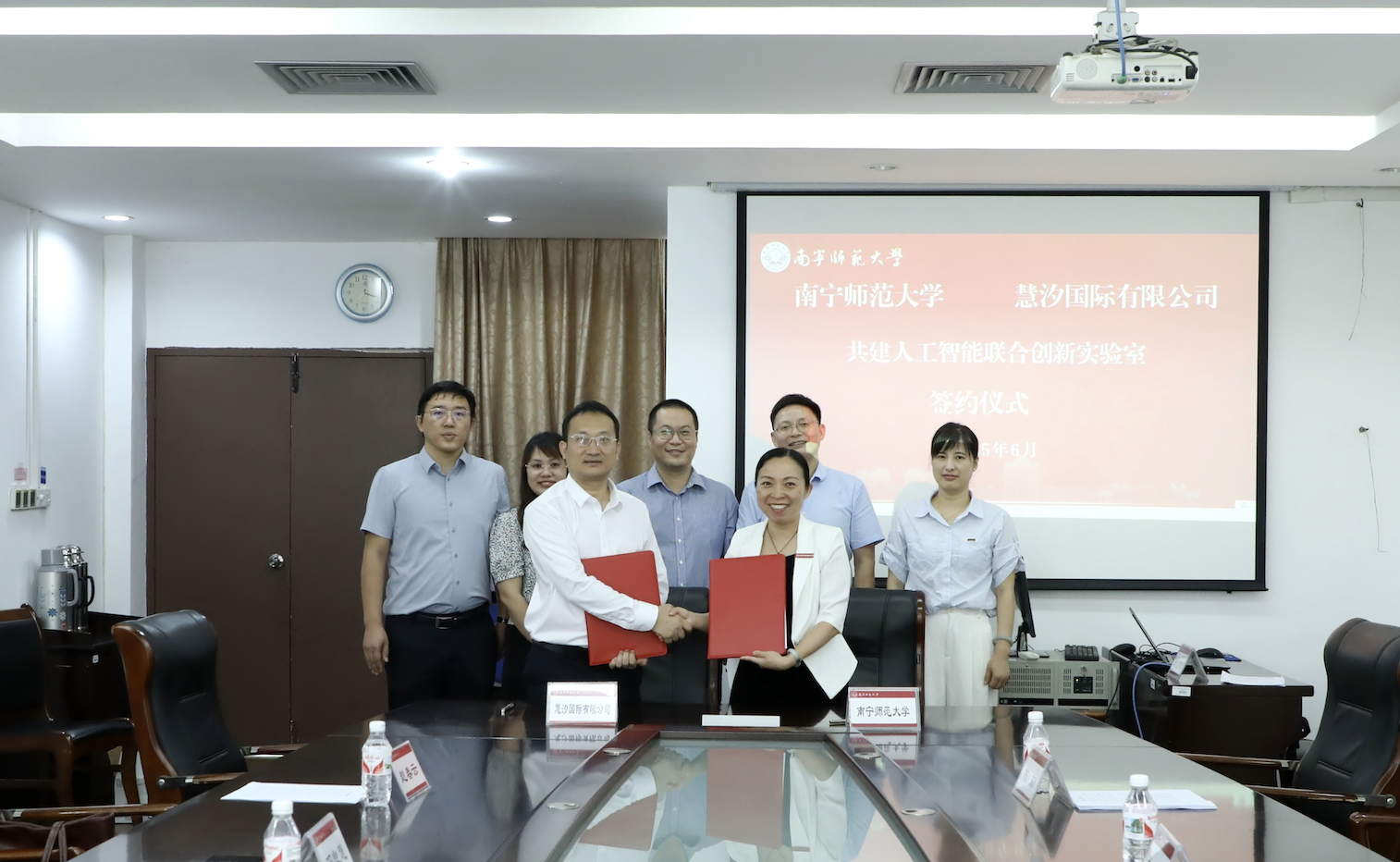 6月30日,我校与入驻中国—东盟人工智能创新合作中心(简称南A中心)的慧汐国际有限公司(老挝)、缅甸GT宽带有限公司在明秀校区举行共建人工智能创新实验室签约仪式。我校副校长龙妮娜,慧汐国际有限公司(老挝)总裁邓良慧、缅甸GT宽带有限公司总经理王鑫、广西南宁大泉井网络信息服务有限公司总经理赵春云以及我校国际交流合作处/国际教育学院、物理与电子学院相关负责人出席仪式。