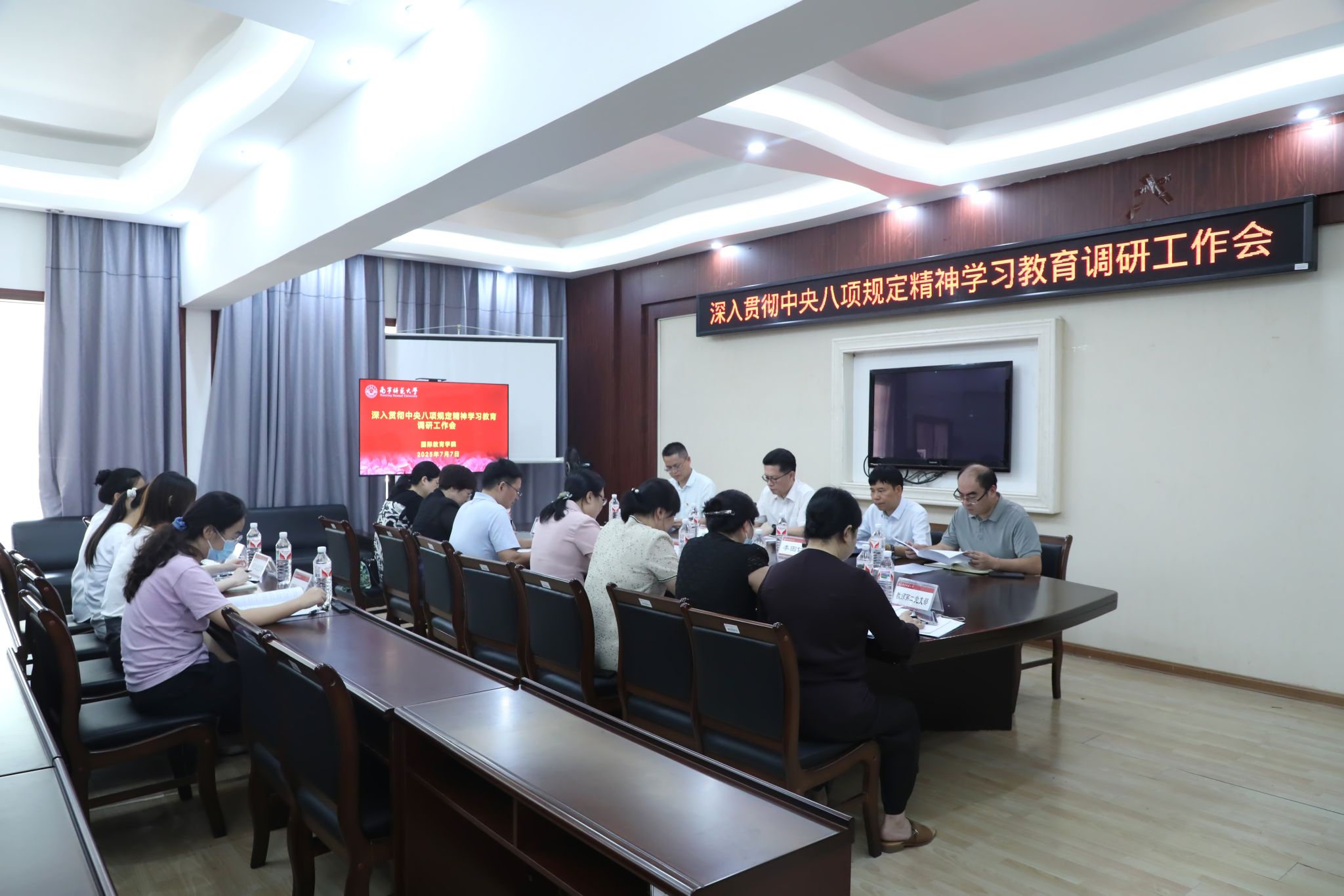 7月7日上午,学校党委书记张鹏带领学校学习教育工作专班有关同志,到明秀校区国际教育学院、职业技术师范学院开展深入贯彻中央八项规定精神学习教育调研指导。