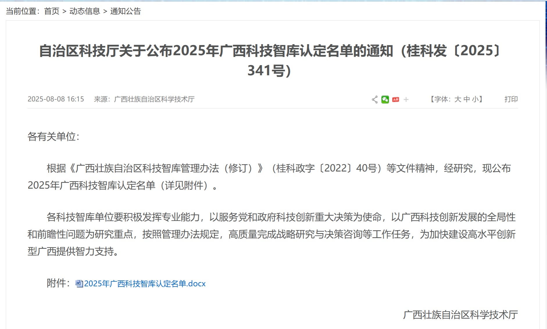 【喜讯】我校1个智库成功入选2025年广西科技智库认定名单