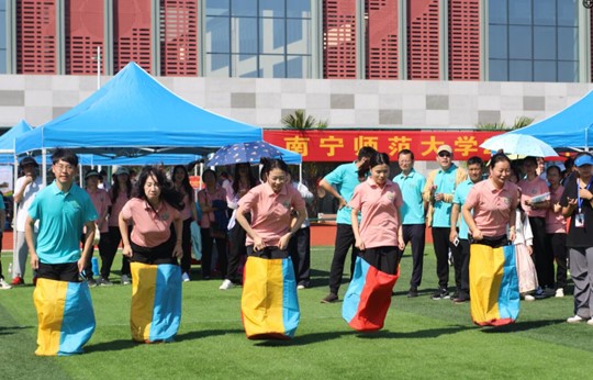 比赛现场热闹非凡,随着裁判一声令下,教师们迅速套上袋子,奋力向前跳跃。在激烈的比拼中,地理科学与规划学院分工会最终拔得头筹。(编辑/黄语慧)