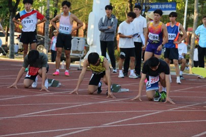 10月31日15时,我校运动会男子100米预赛在武鸣校区田径场拉开序幕。