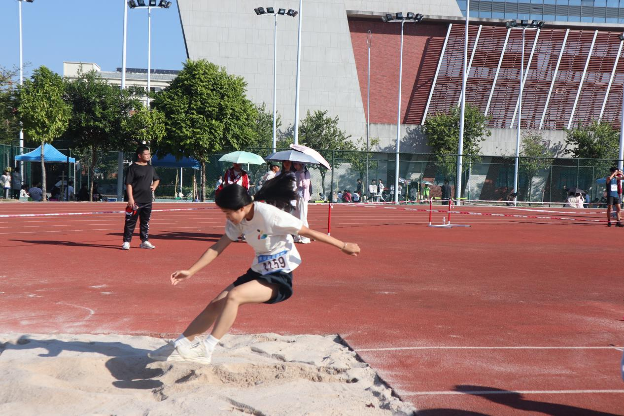 11月1日9时10分,我校运动会女子跳远决赛在武鸣校区松园田径场顺利开展。