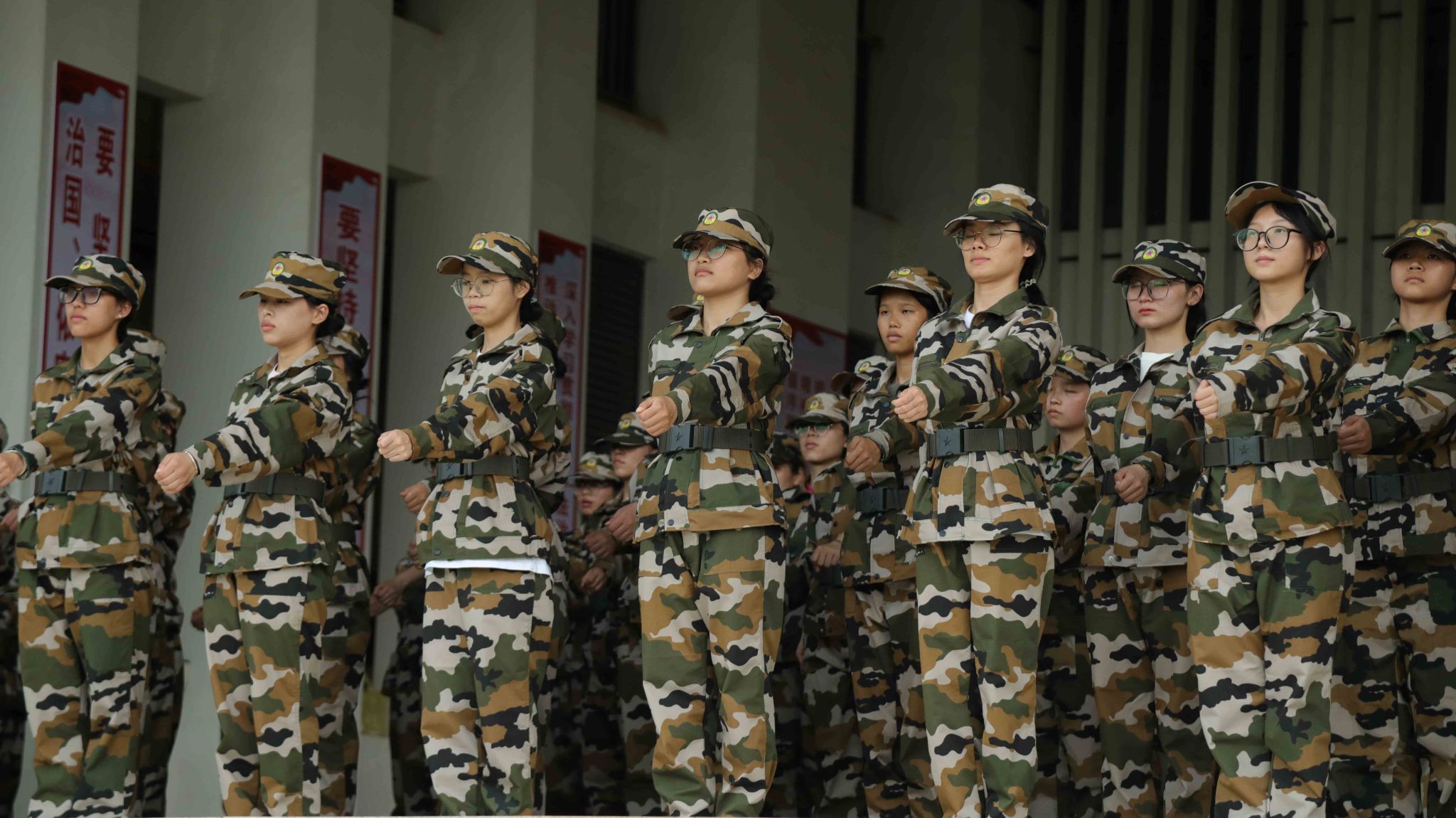 军姿是军人最重要的仪态。挺拔的身姿、夹紧的双臂、抬起的下颚,都是教官们一遍一又遍强调的细节。在教官的不断指正中,同学们的精神愈发高涨,军姿也更加标准。