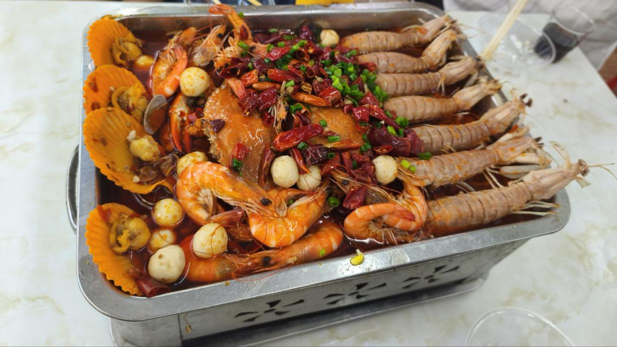 现捞的龙虾、扇贝、在网箱中游弋,炉火升起时,蒜蓉蒸蟹的香气漫过海面。这是大海慷慨的馈赠,也是渔民世代相传的智慧。