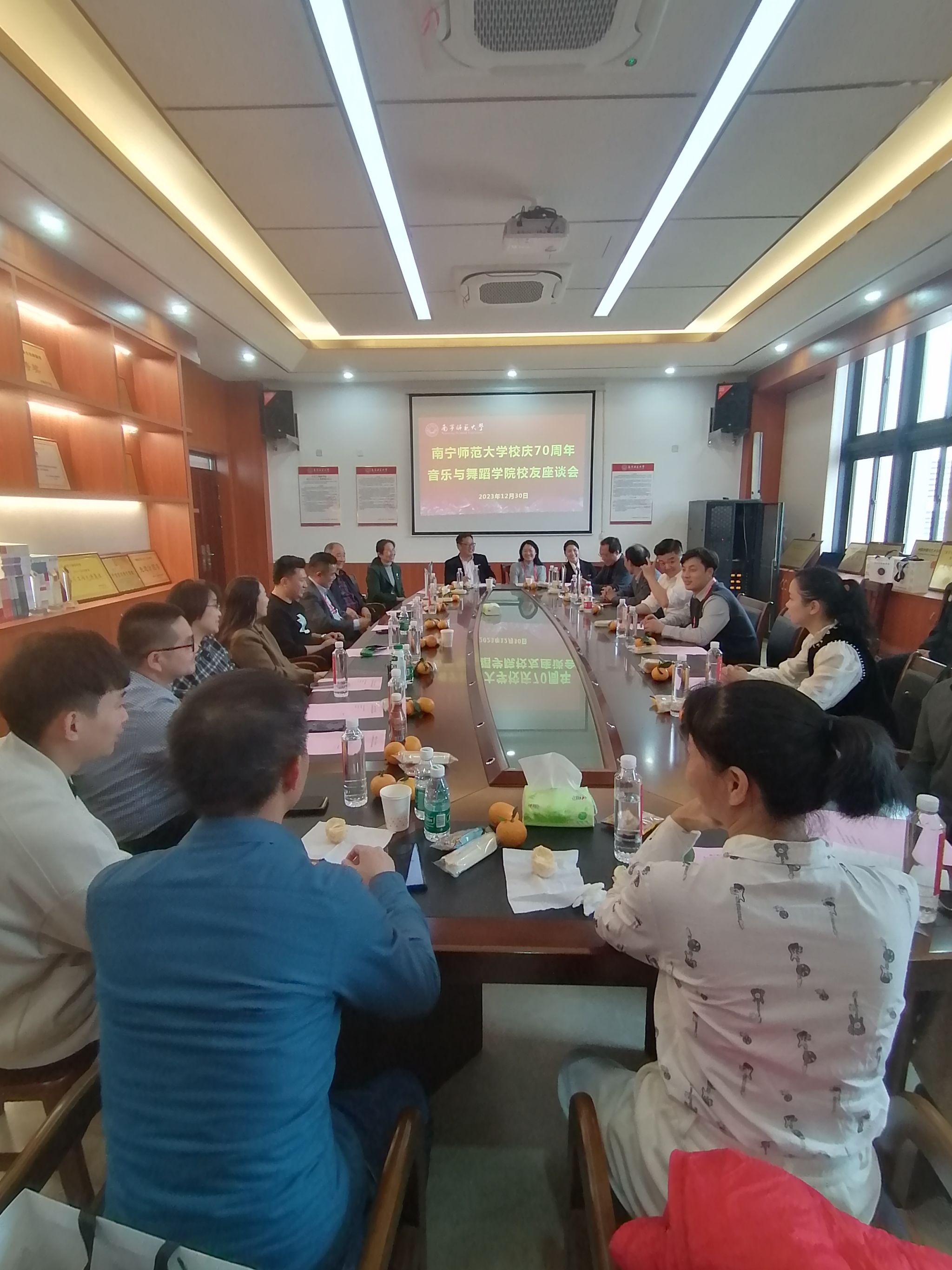 百年逐梦,七秩华章。2023年12月30日下午,音乐与舞蹈学院在音舞楼A3015会议室举办南宁师范大学70周年校庆校友座谈。音舞学院党委书记陈宇、院长黄妙秋,党委副书记龙学禧、副院长周杰,学院退休教师代表朱汝武、贾双飞、韦华峰、黄玲以及学院各届校友参加了座谈会。
