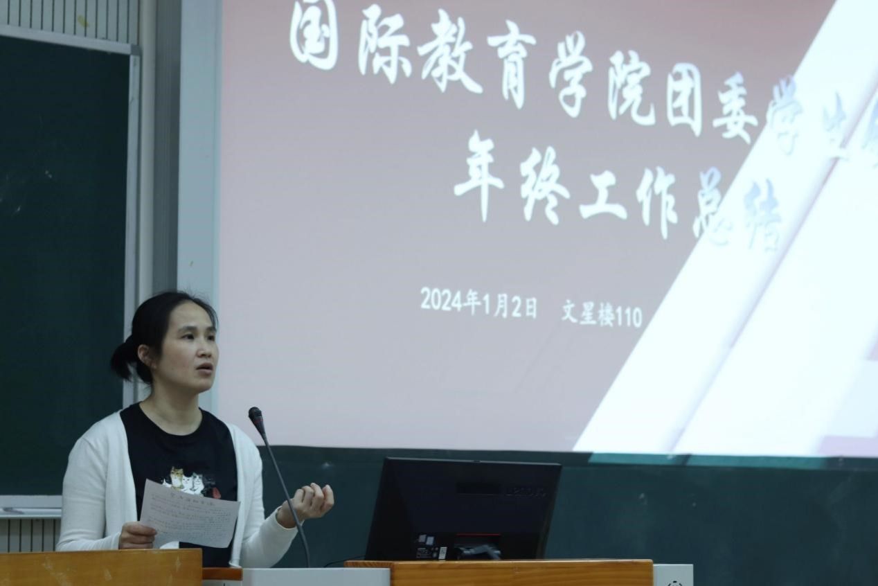 国际教育学院团委学生会于2024年1月2日下午,在文星楼110召开秋季学期工作总结大会。出席会议的有团委书记苏惠敏、学生会全体成员。