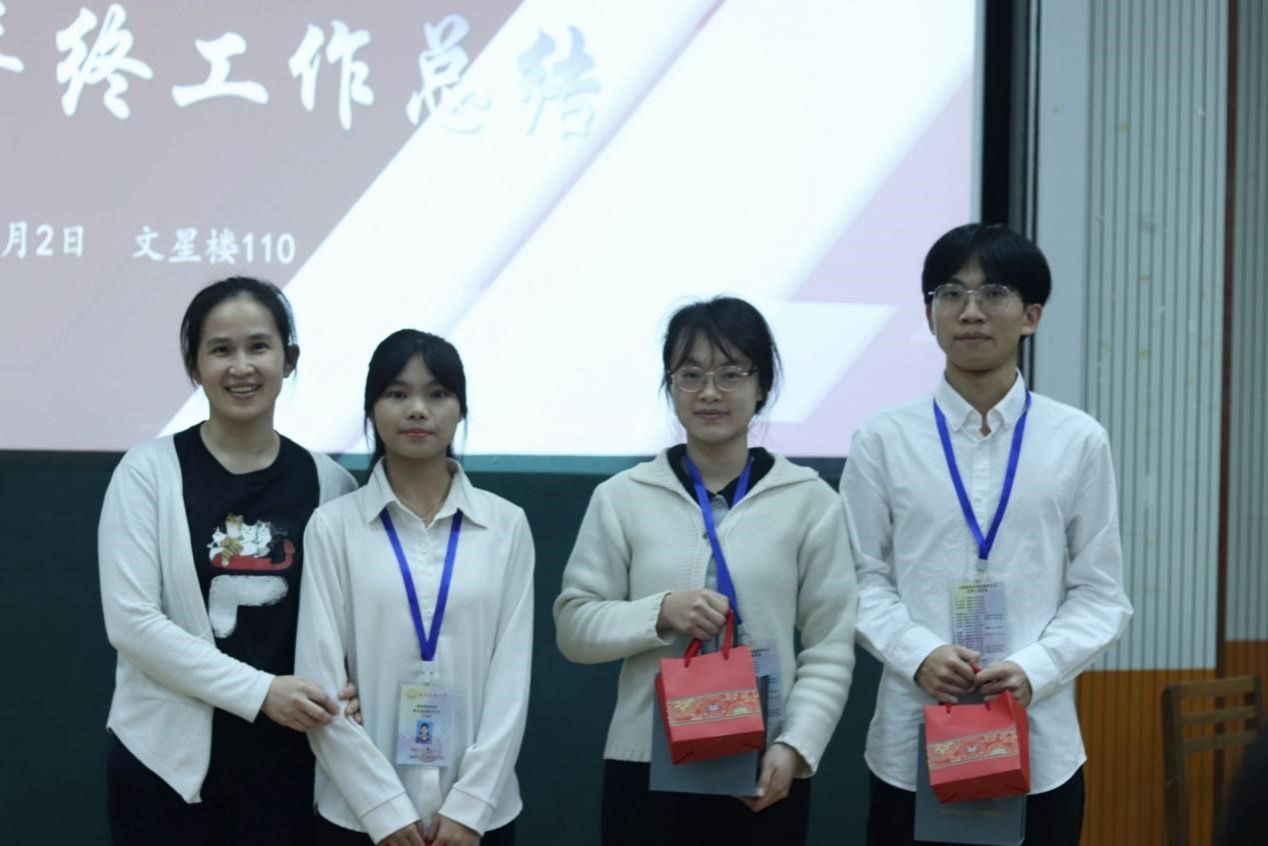 会议开始,各部门负责人依次上台作2023-2024秋季学期工作总结,分享自己的收获与成长。接着,团委学生会主席团成员就本学期工作进行简单述职。会议最后由苏惠敏老师为本学期表现优异的十位同学进行颁奖。同时她也肯定了团委学生会全体同学付出的努力,希望2024年大家能携手共进,把团委学生会建设得越来越好。