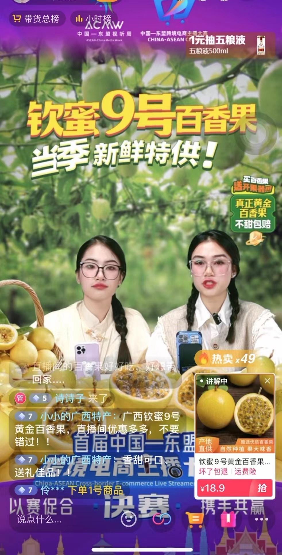 近日,2023年首届中国—东盟跨境电商主播大赛决赛圆满落幕。我院播音与主持艺术专业2021级1班谭诗雨同学、李鑫晶同学两人入围十强,斩获单项奖“最佳创意奖”。