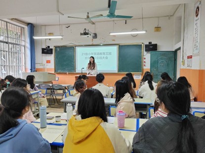 最后,高飞雁副院长对本次大会作出总结。2021级小学英语教育专业全体同学在实习过程中迅速成长,工作认真、有成效。同时大家在实习中走进真正的课堂,掌握不同年龄阶段学生的学习心理特点和授课方法,掌握了与学生相处的方式,以及有效的课堂管理技巧,积累了的宝贵经验。这些都为未来的工作打下了坚实的基础,成为人生中一笔宝贵的财富!
