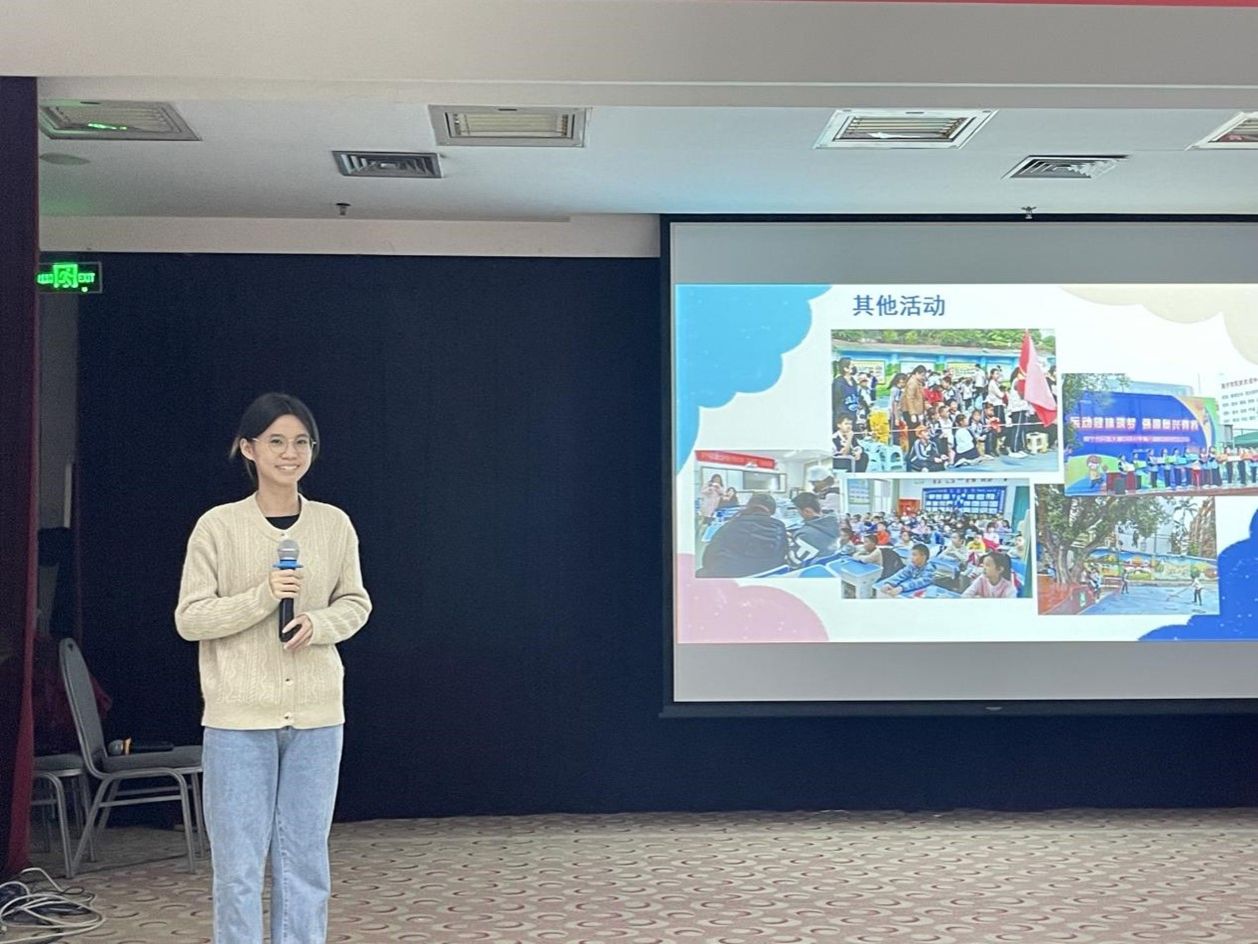 年级实习总结大会上,2021级小学英语教育专业各班代表以PPT图片的方式对本班的实习情况以及收获进行总结。接着各班两名学生代表就各自的实习内容和实习感悟进行汇报。汇报过程精彩纷呈。一班代表何雯雯、罗英绣同学分享在实习过程中备课和授课的收获。二班谭彩秀、龚康利同学和大家分享在实习的过程中如何与学生相处,如何进行高效的课堂管理,如何实施有效教学。三班李晶晶、李群同学与我们分享如何做好班级管理,如何采用奖励制度去激励学生。