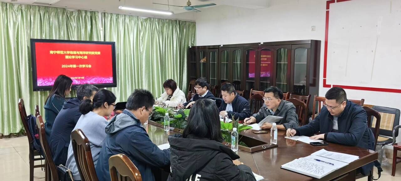 1月10日上午,地理与海洋研究院党委理论学习中心组召开2024年第一次学习会,专题学习宣传贯彻习近平总书记视察广西重要讲话精神。院领导班子、党委委员、纪委委员参加会议。会议由党委书记黄胜敏主持。