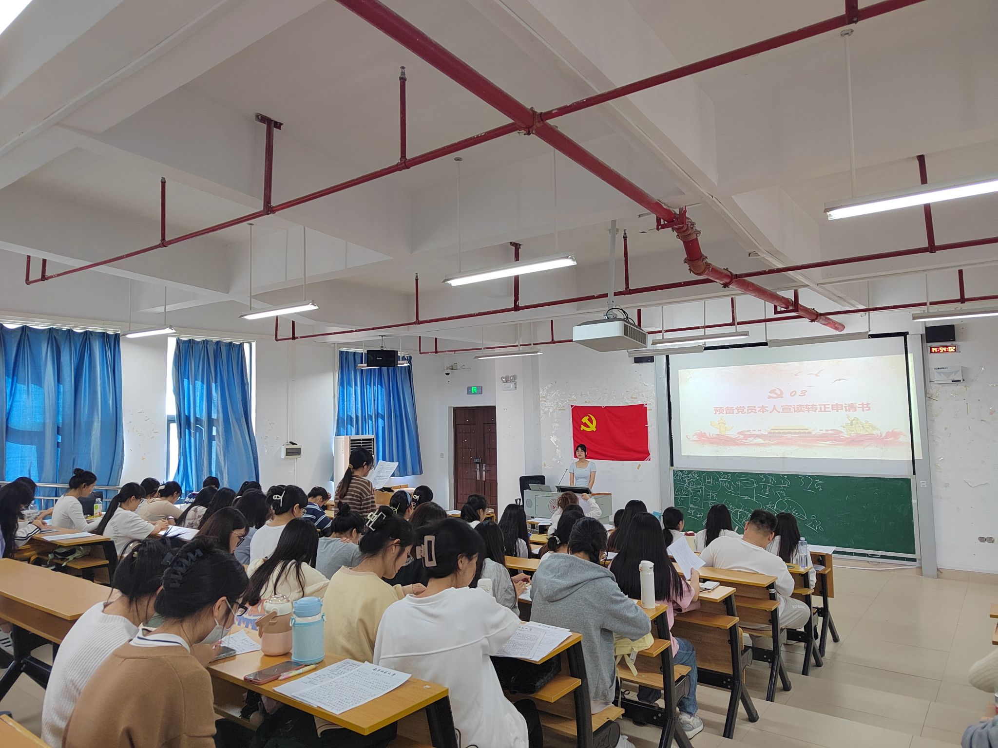 在学院党委的指导下,各支部分别召开党员大会讨论预备党员转正事宜,按照既定流程,各支部组织全体党员起立奏唱国歌,由预备党员逐一宣读个人入党申请、分析个人缺点和不足、标明个人态度和决心,入党介绍人介绍有关同志一年的现实表现、教育和考察情况,与会党员充分发表意见,并经无记名投票方式进行表决,均同意本支部预备期满一年的预备党员按期转正。