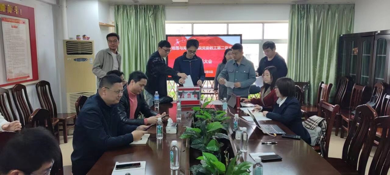 3月6日,经地理与海洋研究院党委批准,教工第二党支部在明秀校区文星楼517召开党员大会,开展支部委员会换届选举工作。