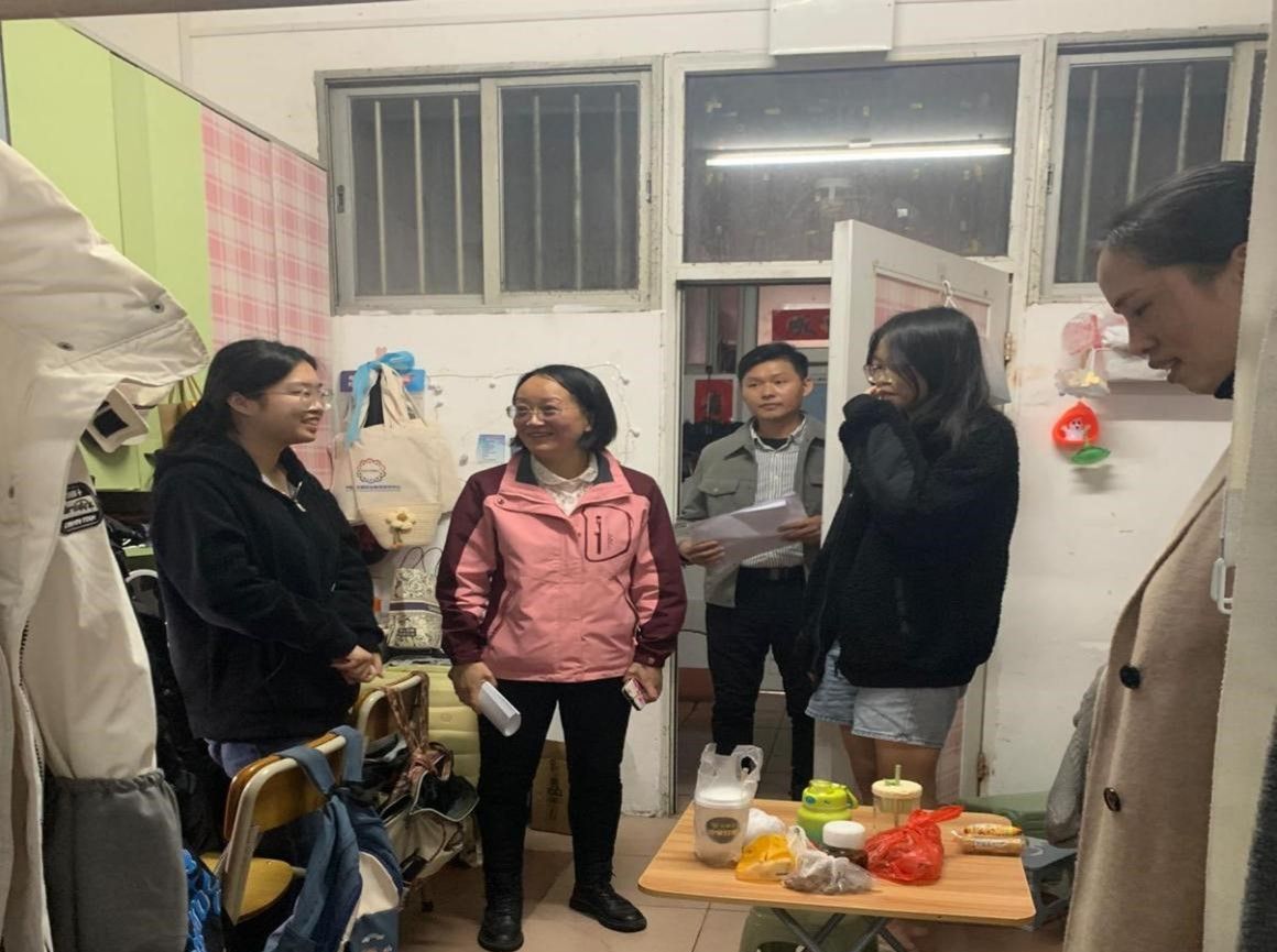 走访过程中,刘副书记一行认真排查学生宿舍是否存在违规使用大功率电器、私拉电线等用电安全隐患,查看宿舍设施损坏情况及宿舍卫生情况,并亲切提醒同学们注意用电安全,做到不私拉电线插座,人离开宿舍做到电器关闭,锁好门窗,将安全意识牢记于心。