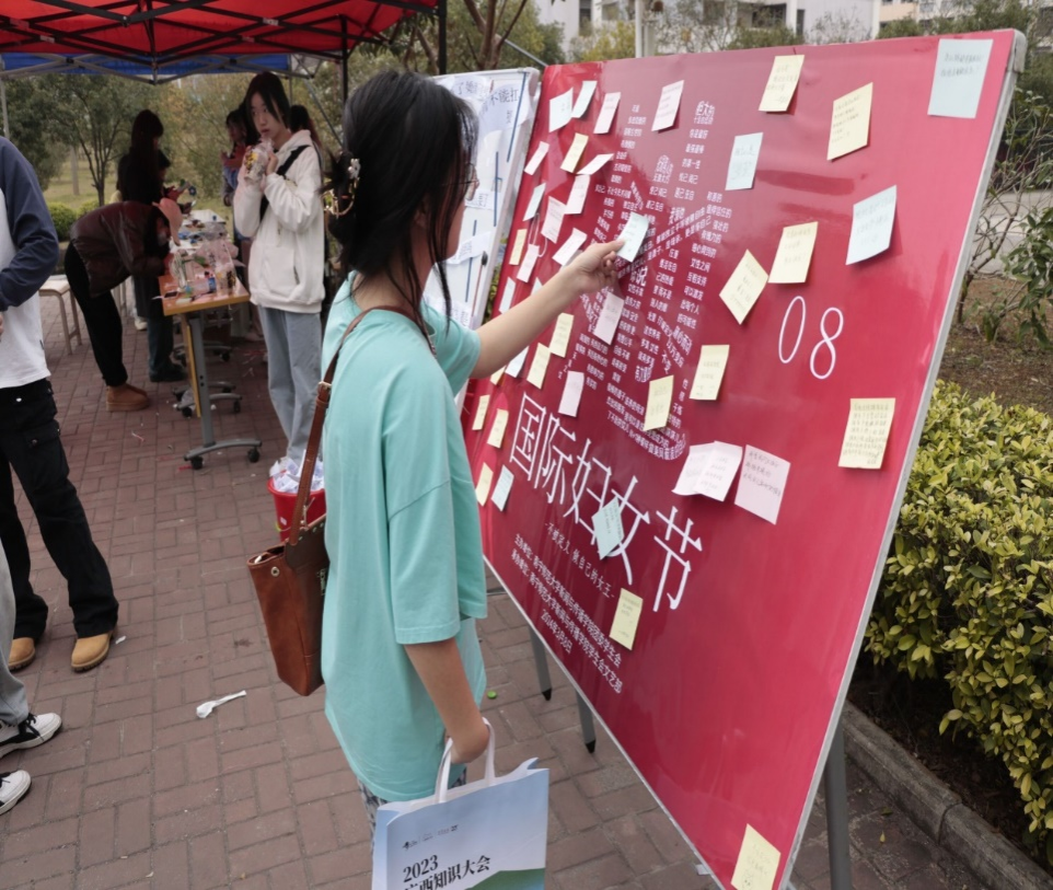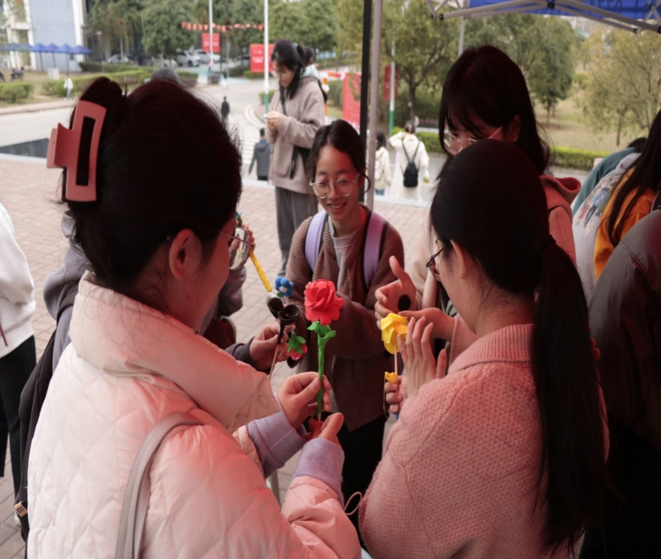 本次活动策划了“撕掉偏见”、“鲜花传递”、“祝福互送”、“手工小课堂”和“定格最美瞬间”五个环节。活动现场吸引了五合校区多个学院师生积极参与,累计参与人数达到了上百人。在活动现场,师生们撕掉带有偏见的标签、传递鲜花、互相赠送祝愿、制作手工花朵、一起合影,用行动表达了拒绝刻板印象的决心和对彼此的真挚祝愿。