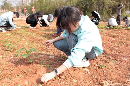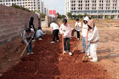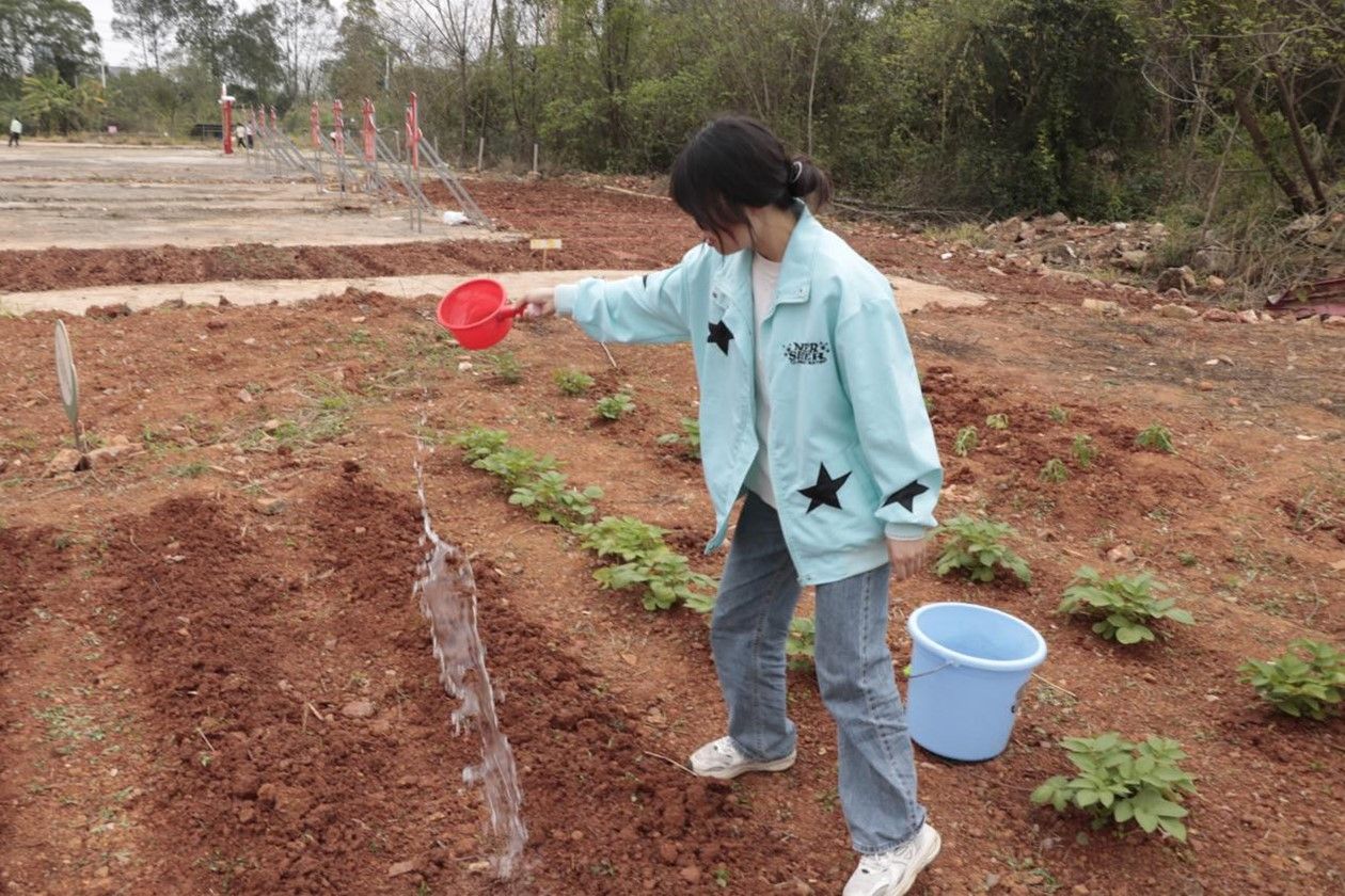 活动中,全体志愿者分为除草组、耕作组、播种组、浇水组开展劳作,各组相互配合,干劲十足,他们挥锹铲土、踩土固苗、提水灌溉,整个过程井然有序、一丝不苟。在同学们的共同劳作下,一株株幼苗在土壤中扎根生长,为校园增添了一份绿意。
