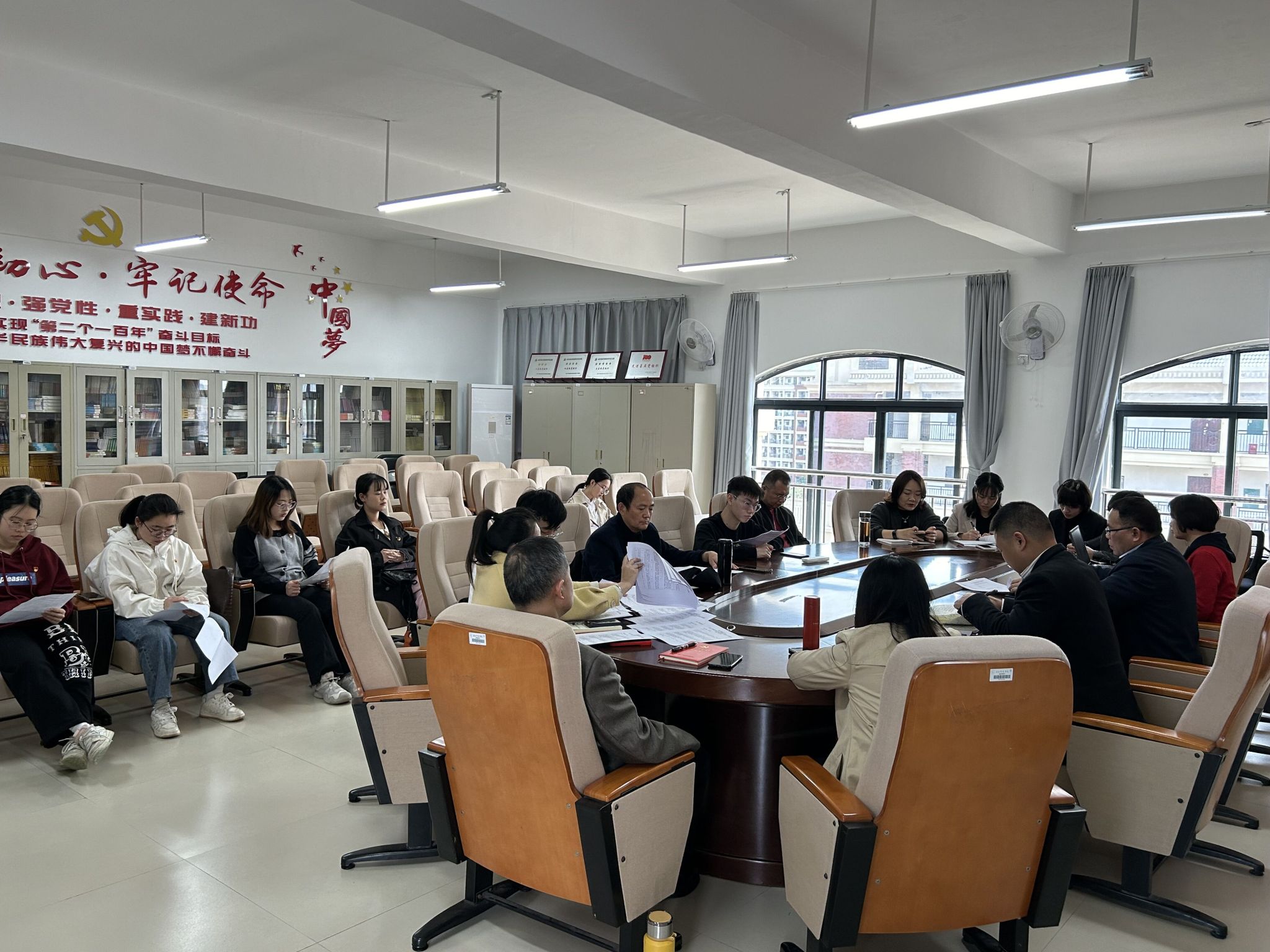 苏华书记听取报告后对各支部书记的述职工作逐一进行点评并提出改进意见,随后组织与会的党委委员根据各党支部日常工作成效与汇报情况进行评分。