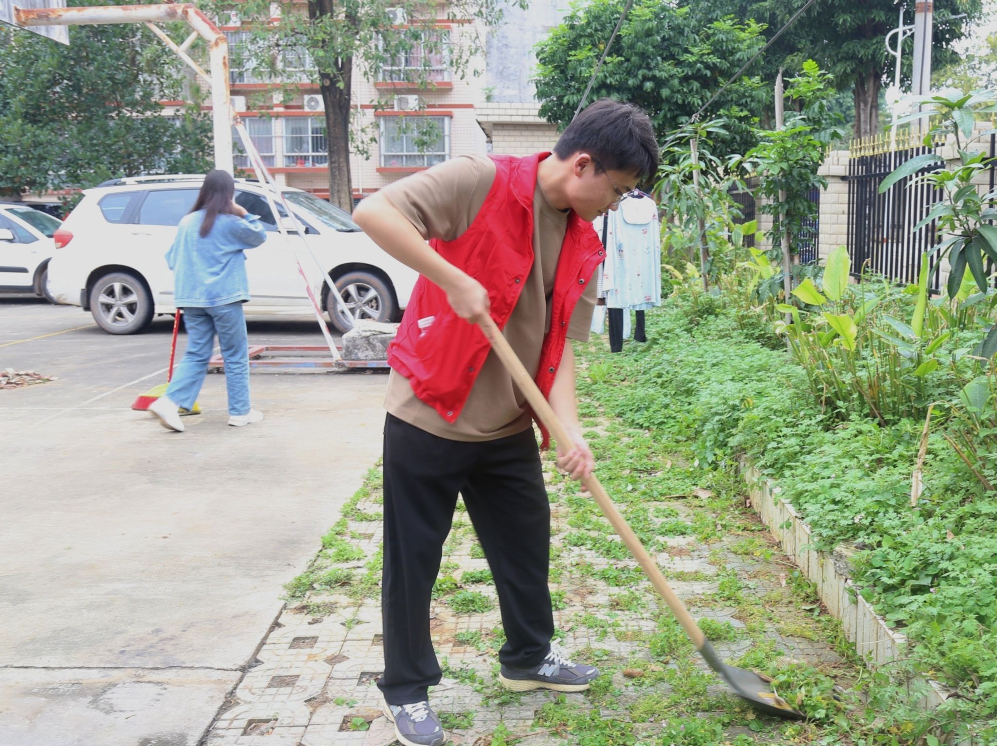 在本次实践活动中,马克思主义学院志愿者跟随社区工作人员进入金葫社区开展清扫活动。在社区工作人员的指导下,志愿者们有条不紊地铲除花圃中的杂草和清扫地面上的垃圾,致力于为居民提供一个洁净舒适的生活环境。在志愿者们的共同努力下,社区道路焕然一新。