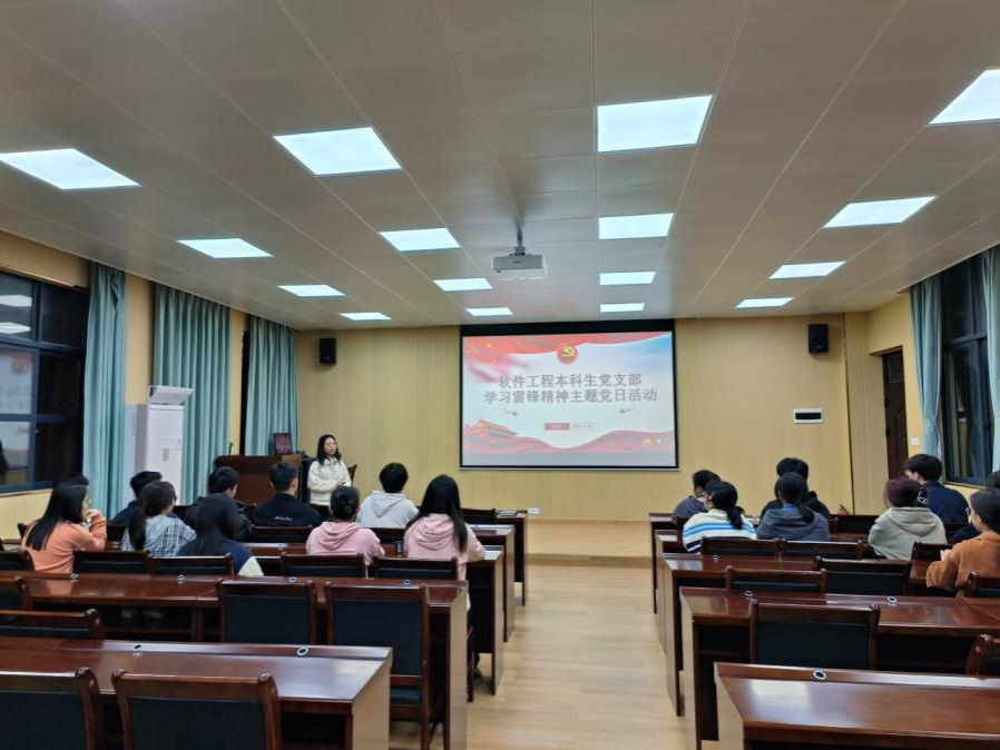 为进一步深入学习贯彻落实党的二十大精神和习近平总书记关于弘扬雷锋精神和志愿服务工作的重要指示精神,引导党员同志们深刻把握雷锋精神的时代内涵,更好发挥党员、干部模范带头作用,加强志愿服务保障和支持,不断发展壮大学雷锋志愿服务队伍,让学雷锋在人民群众特别是青少年中蔚然成风,让学雷锋活动融入日常、化作经常,让雷锋精神在新时代绽放更加璀璨的光芒,实实在在践行社会主义核心价值观,3月14日,计算机与信息工程学院软件工程本科生党支部在地信楼A301开展学习雷锋精神的主题党日活动,支部全体党员参加,支部书记许艺静老师主持。