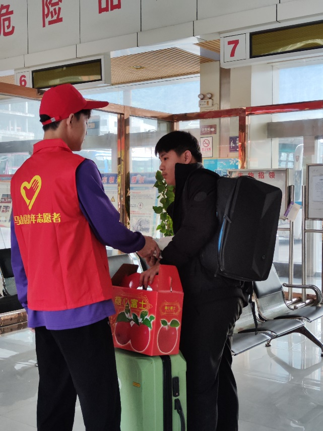 在活动现场,2021级专升本4班林桂兰和2023级计本班韦翔、傅晨希同学身着统一的志愿者服装,脸上洋溢着青春、阳光的笑容,活跃在车站的各个角落。他们利用自己的知识储备和技能,耐心、热情地为归途的旅客提供信息咨询、票务协助、行李搬运、应急救援、交通安全劝导、出行建议等帮助,用实际行动践行了“人民至上”“助人为乐”的理念,展现了新时代青年的责任与担当,也让返乡的旅客旅途充满温馨。