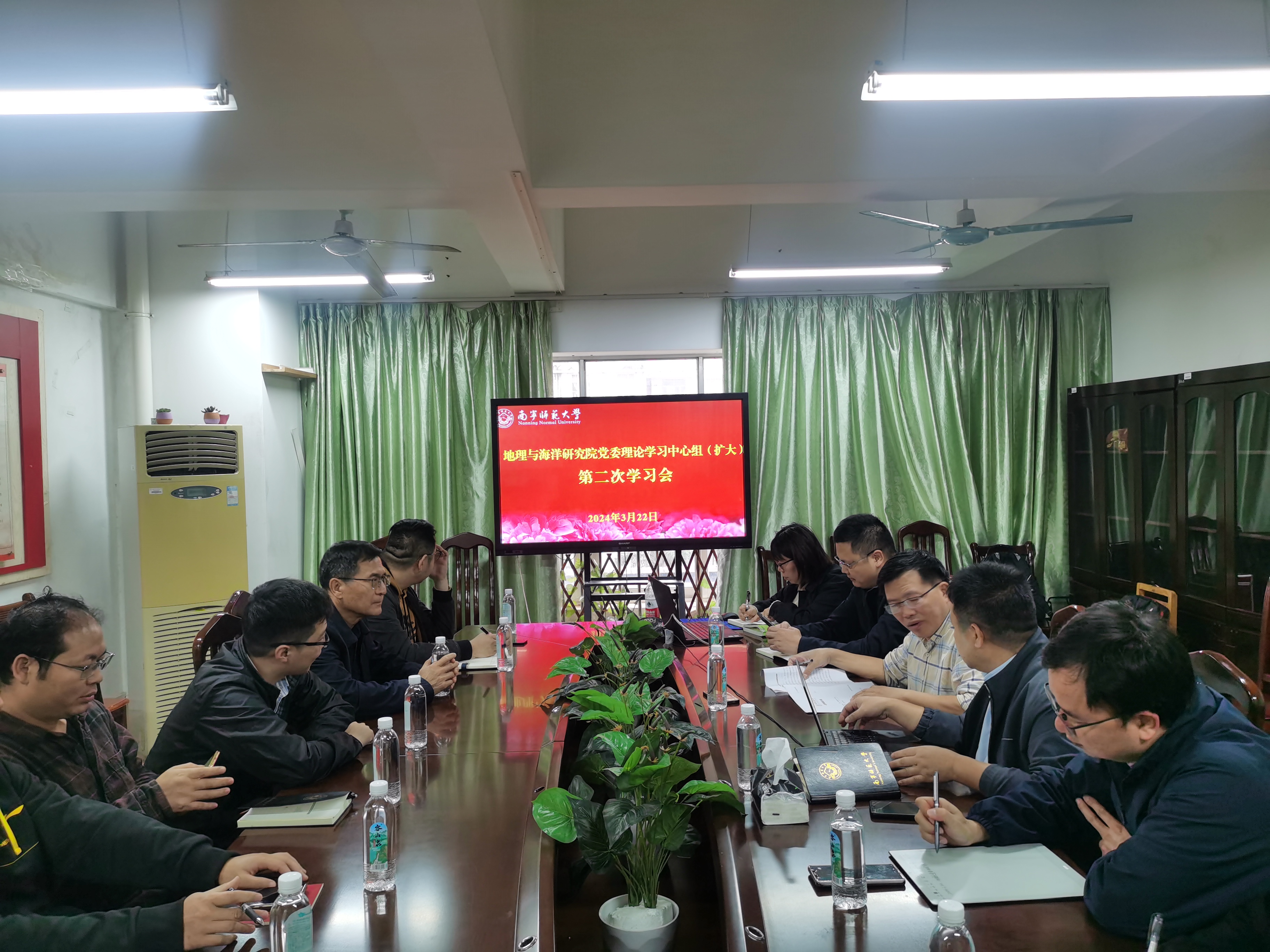 3月22日下午,地理与海洋研究院党委理论学习中心组召开2024年第2次集体学习研讨(扩大)会议,院党委书记黄胜敏同志主持会议,院党委行政领导、中心负责人和骨干等20多人了参加会议。